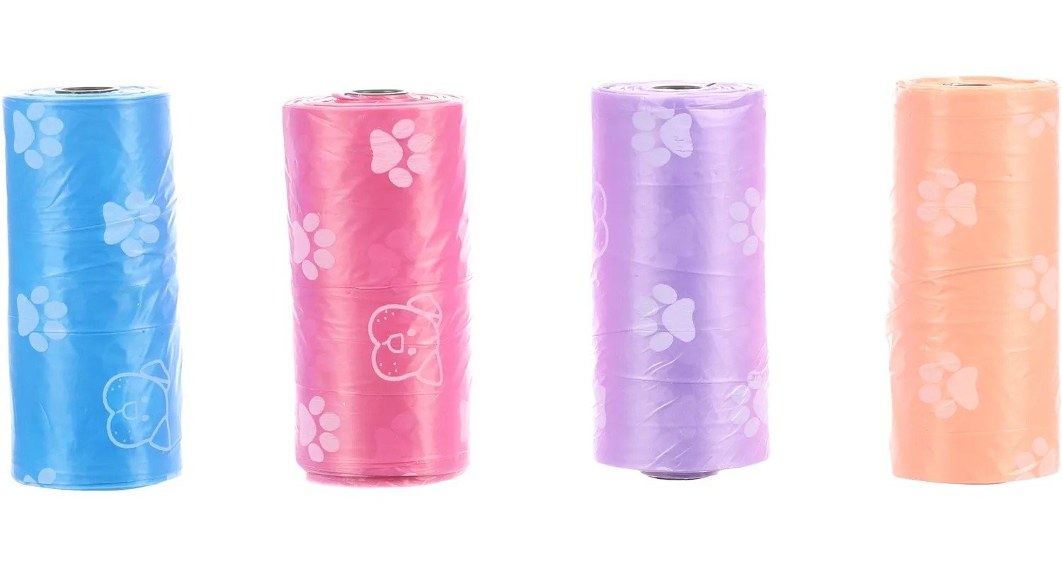 Krásné barevné sáčky na psí exkrementy v praktické ruličce. Vhodné pro doplnění.