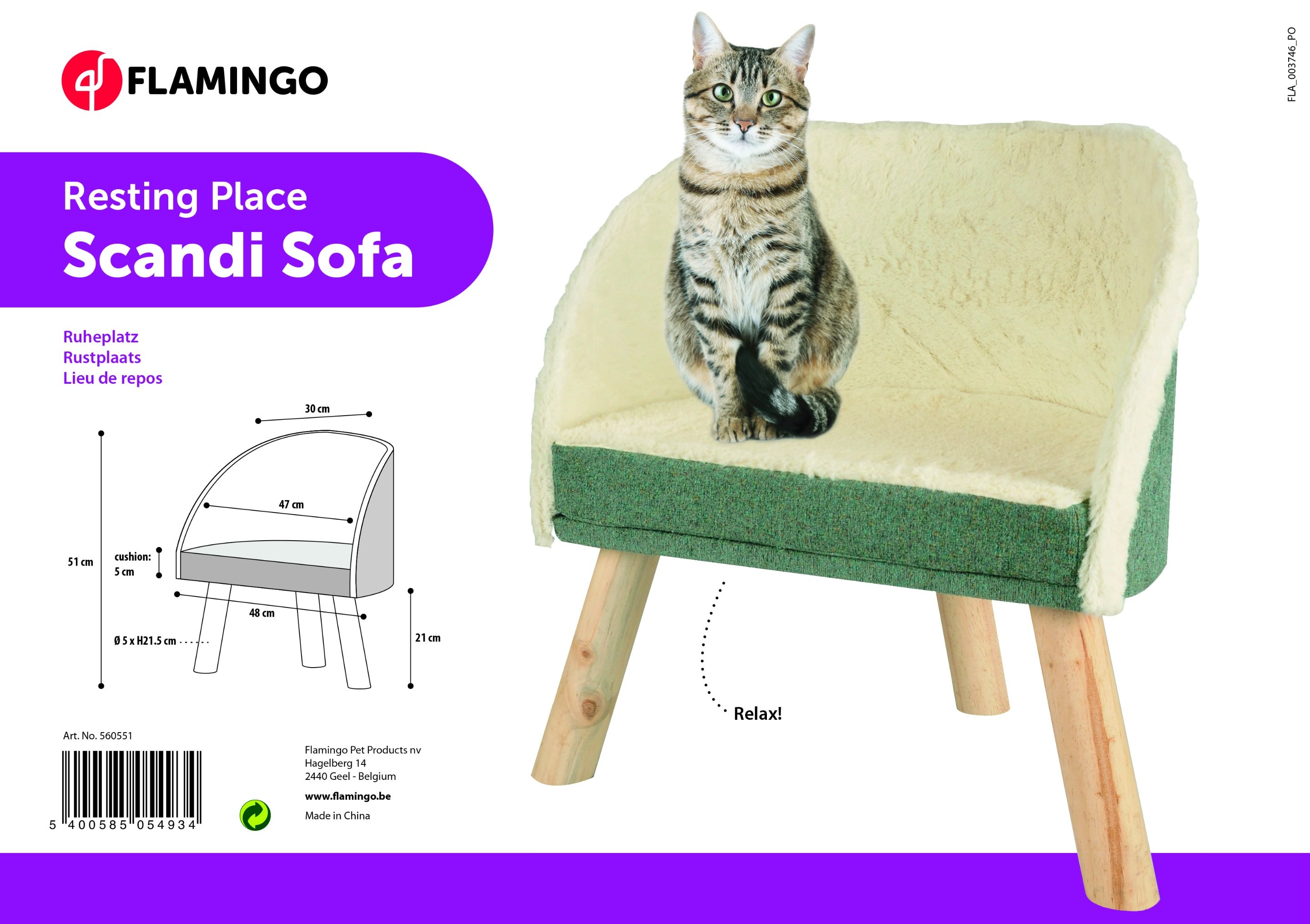 Flamingo Scandi Pohovka pro kočky Přírodní/zelená