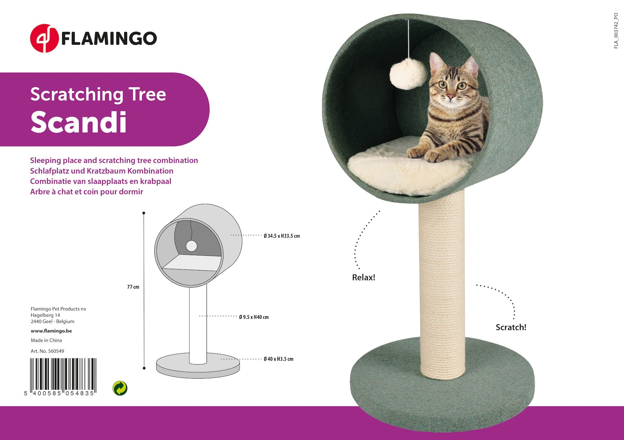 Škrabadlo Scandi poskytne Vaší kočce stylovou škrabací, odpočívací a hrací plochu. S měkkým polštářem pro extra pohodlí. Ideální na spaní, hraní a broušení drápků.