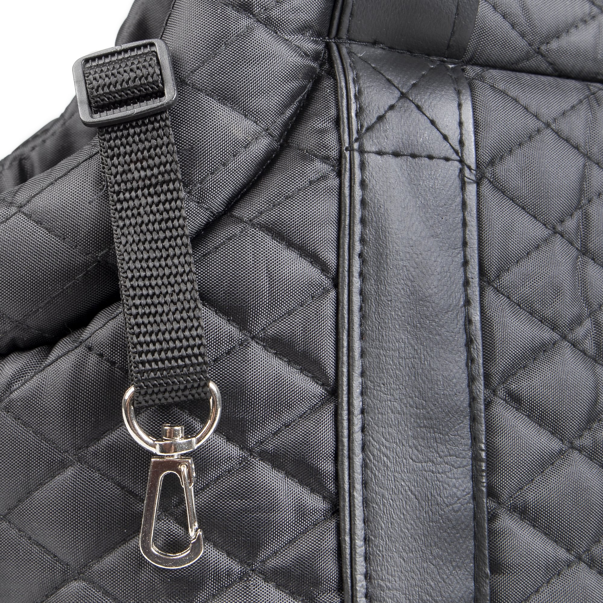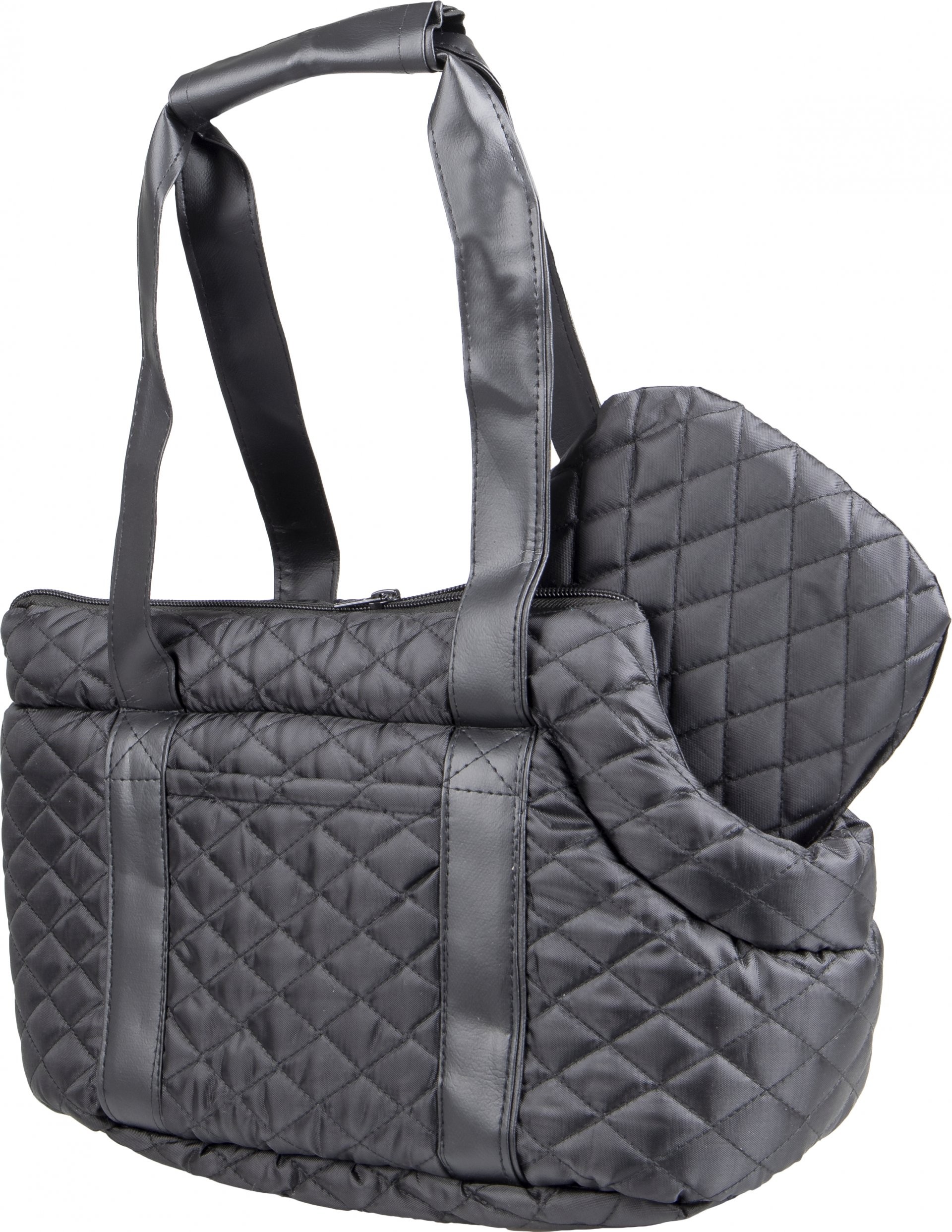 Praktická a hlavně designově povedená černá cestovní taška BAILEY Vám usnadní cestování s Vaším chlupatým miláčkem. Taška je prošívaná s koženým úchytem a popruhem přes rameno. Rozměry 38x20x18 cm.