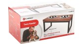 Stylový stojan se 2 nerezovými miskami, kombinace kov/mangové dřevo. Výška 21 cm. Celý popis