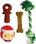 Vánoční set pro psy obsahuje dva pamlsky a dvě hračky. Celý popis