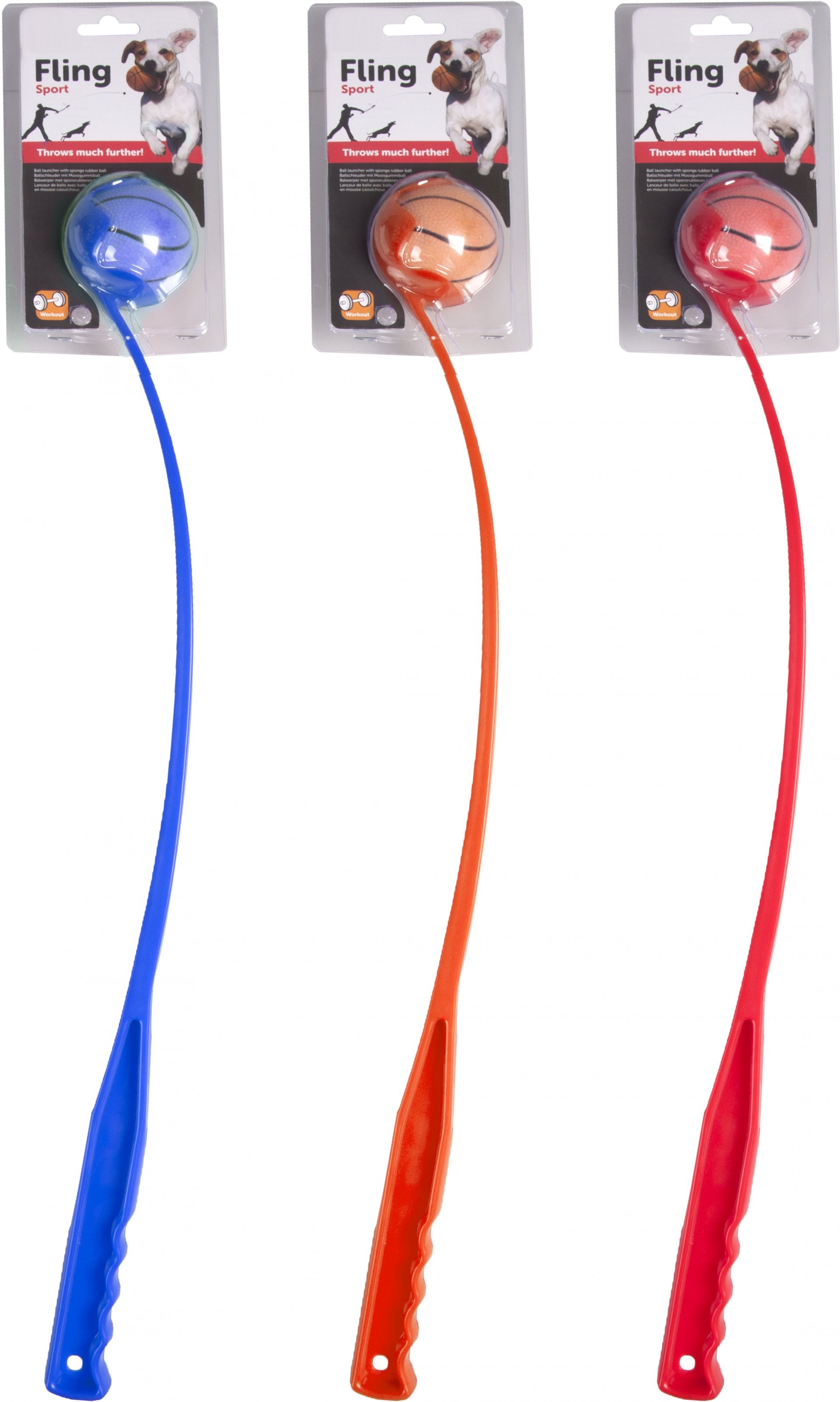 Vrhač míčků od značky Flamingo nabízí tři barevná provední - zelená, modrá, červená. Tato prodloužená ruka Vám umožní házet míček mnoho metrů bez větší námahy. Součástí balení je gumový míček. Velikost 63cm.