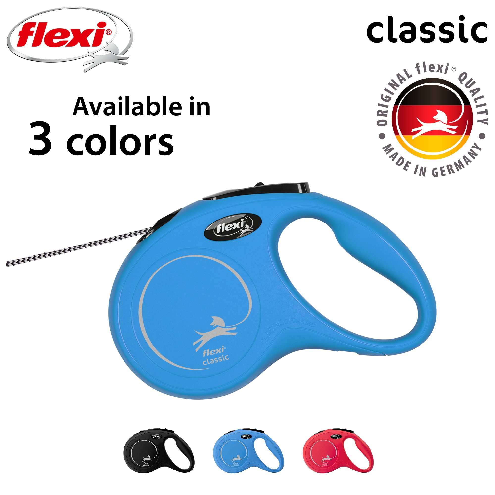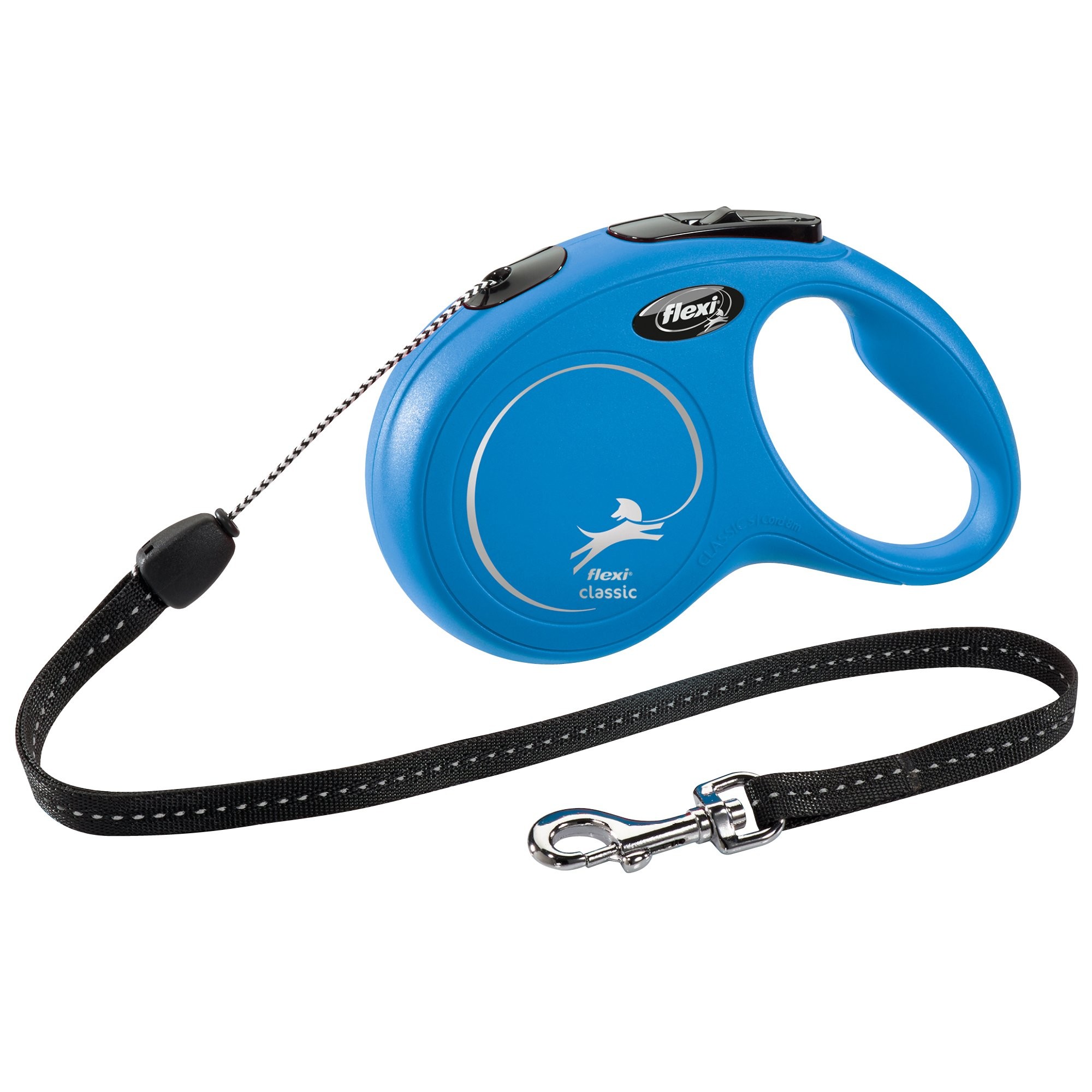 Vodítka flexi® classic nabízí pohodlný úchop, odolný navíjecí systém i kvalitní, bezpečný a intuitivní brzdový systém, který ve zlomku vteřiny zastaví pohyb psa. Pro snadné upevnění vodítka k obojku nebo postroji je vodítko opatřeno chromovanou karabinou.