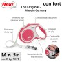 Pohodlné a díky svému dokonale sladěnému designu i unikátní - to je vodítko flexi® comfort, které nabízí Vašemu čtyřnohému příteli vše, co psi milují: pohyb, pohyb a ještě jednou pohyb! Vás jistě potěší extra pohodlná, měkká rukojeť (ve velikosti M a L je navíc nastavitelná) i zdokonalený výstup a vedení pásku všemi směry bez zasekávání. Na každé procházce oceníte i bezpečný a intuitivní brzdový systém, který ve zlomku vteřiny zastaví pohyb psa. Pro snadné upevnění vodítka k obojku nebo postroji je vodítko opatřeno kvalitní chromovanou karabinou.
