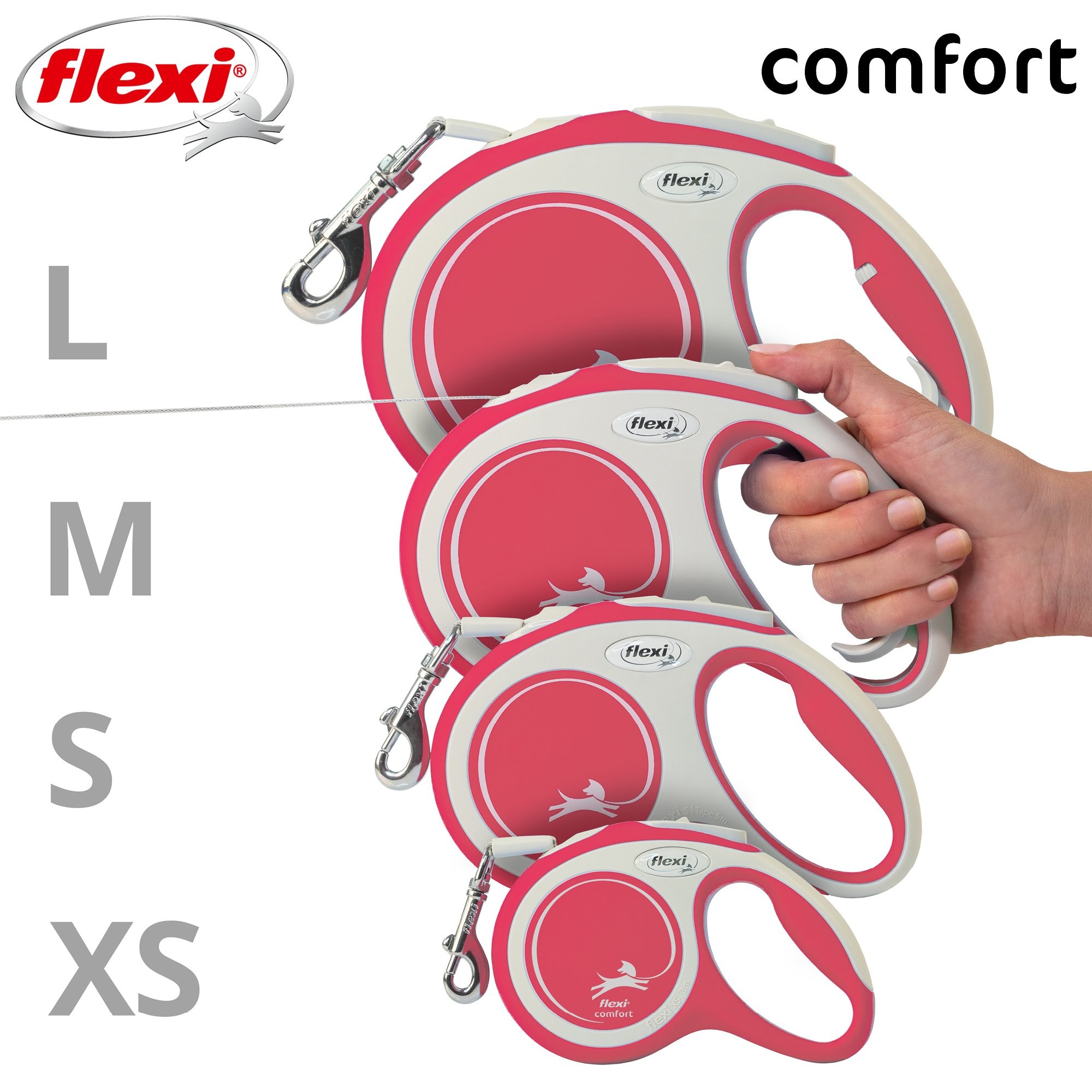Pohodlné a díky svému dokonale sladěnému designu i unikátní - to je vodítko flexi® comfort, které nabízí Vašemu čtyřnohému příteli vše, co psi milují: pohyb, pohyb a ještě jednou pohyb! Vás jistě potěší extra pohodlná, měkká rukojeť (ve velikosti M a L je navíc nastavitelná) i zdokonalený výstup a vedení pásku všemi směry bez zasekávání. Na každé procházce oceníte i bezpečný a intuitivní brzdový systém, který ve zlomku vteřiny zastaví pohyb psa. Pro snadné upevnění vodítka k obojku nebo postroji je vodítko opatřeno kvalitní chromovanou karabinou.