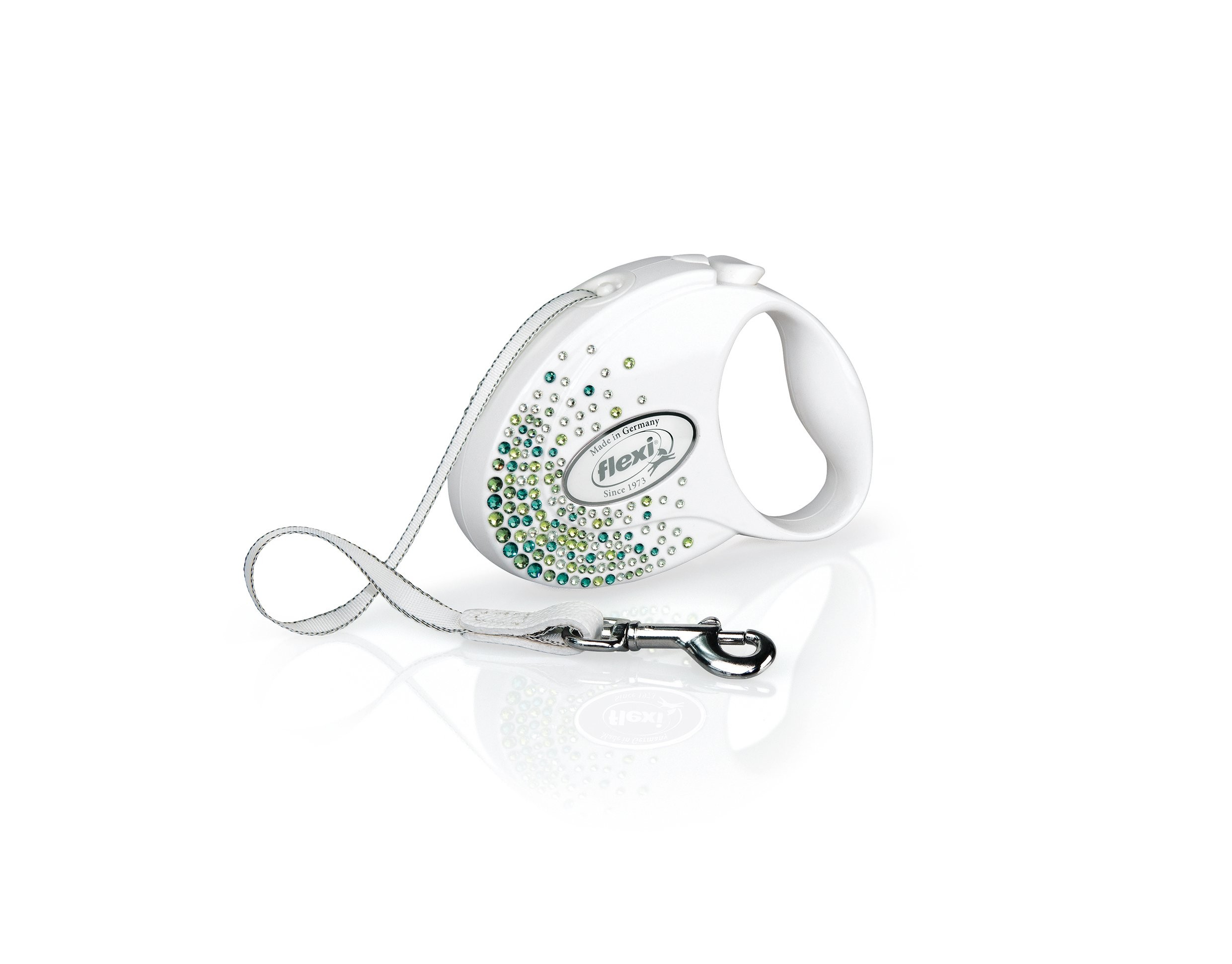 S elegantním lesklým povrchem a zdobením vysoce kvalitními krystaly představuje flexi® Glam jedinečné vodítko s puncem luxusu. Kožené zakončení pásku dokonale kombinuje design a funkčnost. Vyberte si ten správný třpyt pro váš velkolepý vstup do psího parku!