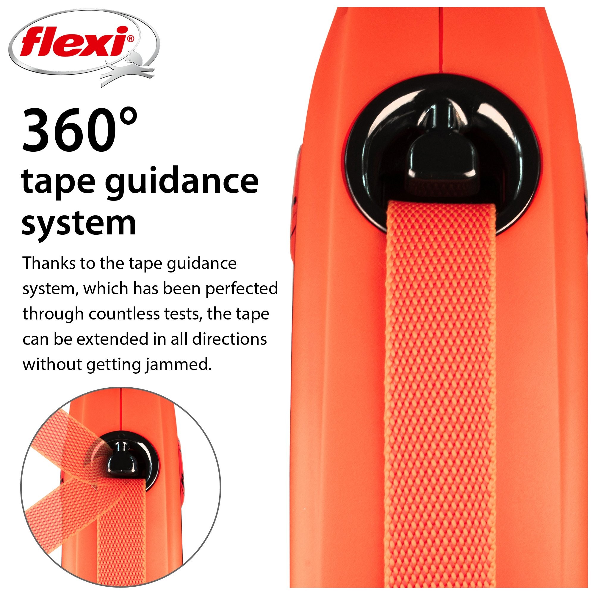 Samonavíjecí vodítko flexi® se nikdy neprověsí. To Vám umožňuje kdykoli zastavit psa stisknutím tlačítka brzdy, bezpečně ho ovládat a přiblížit ho k sobě.