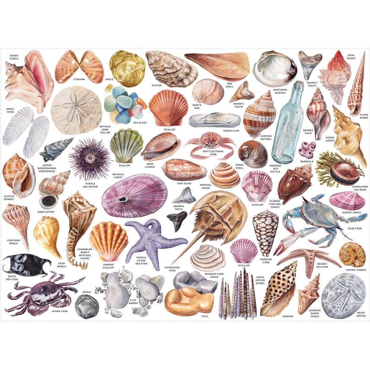 Puzzle využívající licence díla The Beachcomber’s Companion [Příručka plážového povaleče] Anny Marlis Burgard, známé americké cestovatelky a spisovatelky, ale i autorky multimediálních projektů. Věrně vyobrazuje schránky nejrůznějších živočichů, ale i jiných pokladů, na které můžete narazit při toulkách pláží. Některé z předmětů jsou zpracovány jako samostatné dílky roztodivných tvarů, které vnáší do skládání osvěžující prvek. Autorkou obrázků je Jillian Ditnerová, vědecká ilustrátorka známá svou tvorbou především severní americe. Puzzle Galison jsou vyrobeny za použití významného podílu recyklovaného papíru a nabízí špičkový potisk nezávadnými barvami. Jsou opatřeny matnou povrchovou úpravou, která zajišťuje za všech okolností věrné podání detailů i barev. Jejich zadní strana je potažena hladkým, na dotek příjemným povrchem, díky němuž se při skladování rozloženého puzzle netvoří prach. Spolu s pečlivě zabalenými dílky naleznete v balení také letáček s návodným obrázkem, který zpravidla obsahuje další informace o tvůrcích a pozadí vzniku díla. Dodáváno v mimořádně pevné a poutavě zpracované kartonové krabičce vyrobené z recyklovaného kartonu a udržitelně získaných materiálů s certifikací FSC®.   Hlavní vlastnosti:1000 precizně vyřezaných dílků, z toho 20 s unikátním tvaremvyrobeno s použitím recyklovaných a udržitelně získaných materiálůpečlivě vybraný motiv od renomovaných tvůrců a umělcůpotisk a provedení nejvyšší kvalityobsahuje návodný obrázek