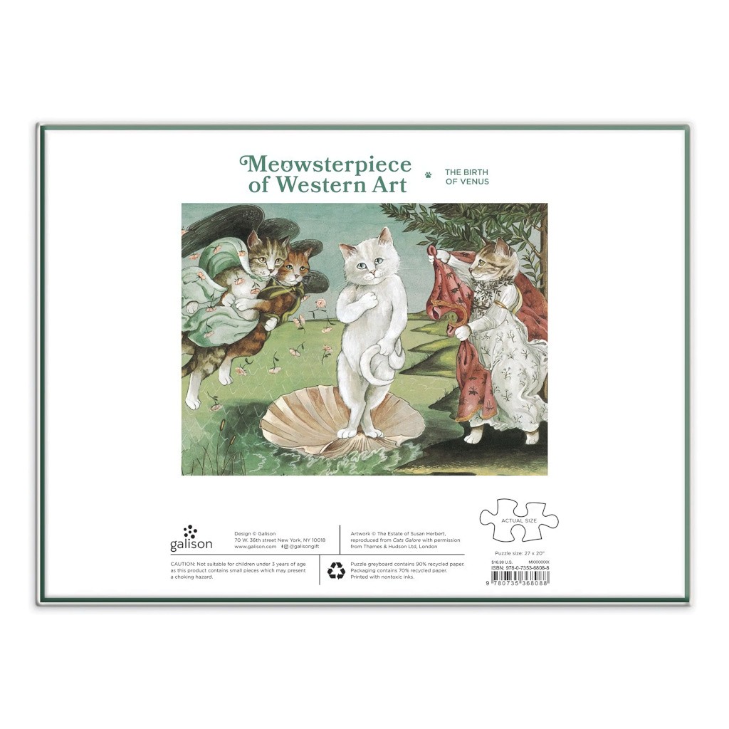 Klasika od Botticelliho v kočičí verzi. Toto puzzle Zrození Venuše je vtipná a srdečná parodie na ikonické dílo z 15. století. Ilustrováno Susan Herbert, současnou kočičí umělkyní. Toto nádherné 1000dílné puzzle je perfektním dárkem pro milovníky koček i umění. Je baleno v pevné krabici s matným povrchem. Součástí je také obrázková předloha. Hlavní vlastnosti: obsahuje 1000 dílkůilustrace Susan Herbertjednotlivé dílky do sebe přesně pasujírozvíjí logické myšlení a motorikuskvělý design