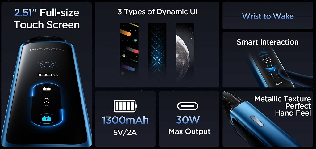 Elektronická cigareta typu Pod s velkou kapacitou baterie 1300mAh, USB-C nabíjením (5V/2A) a nastavitelným výkonem 5-30W. Obsahuje 2.51" OLED displej, nastavitelný airflow pro MTL i RDL vaping a duální aktivaci žhavení. Kompatibilní s 2ml Geekvape Q Pod Cartridgemi (0.4, 0.6, 0.8, 1.2ohm). Zahrnuje ochranu proti přehřátí, zkratu a vybití baterie plus dětskou pojistku. Rorměry 126.37 x 28mm. Výrobce: GeekVape, barva: Frosted Silver (Stříbrná). Celý popis