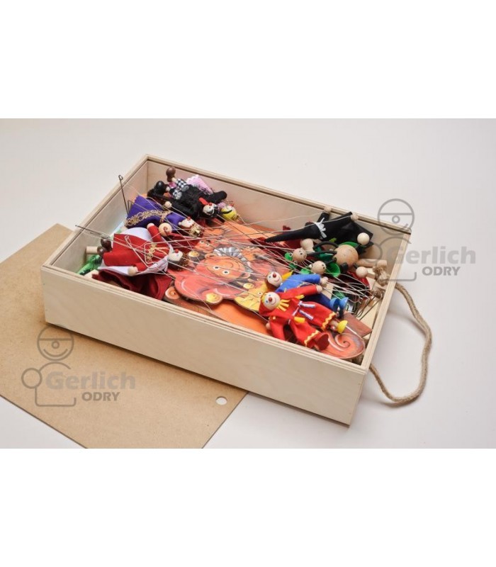 Rozměry: 32X46X41 cm Velikost loutek: 12-15 cm Věk: 3+ Obsahuje 8 loutek a kulisy Celý popis