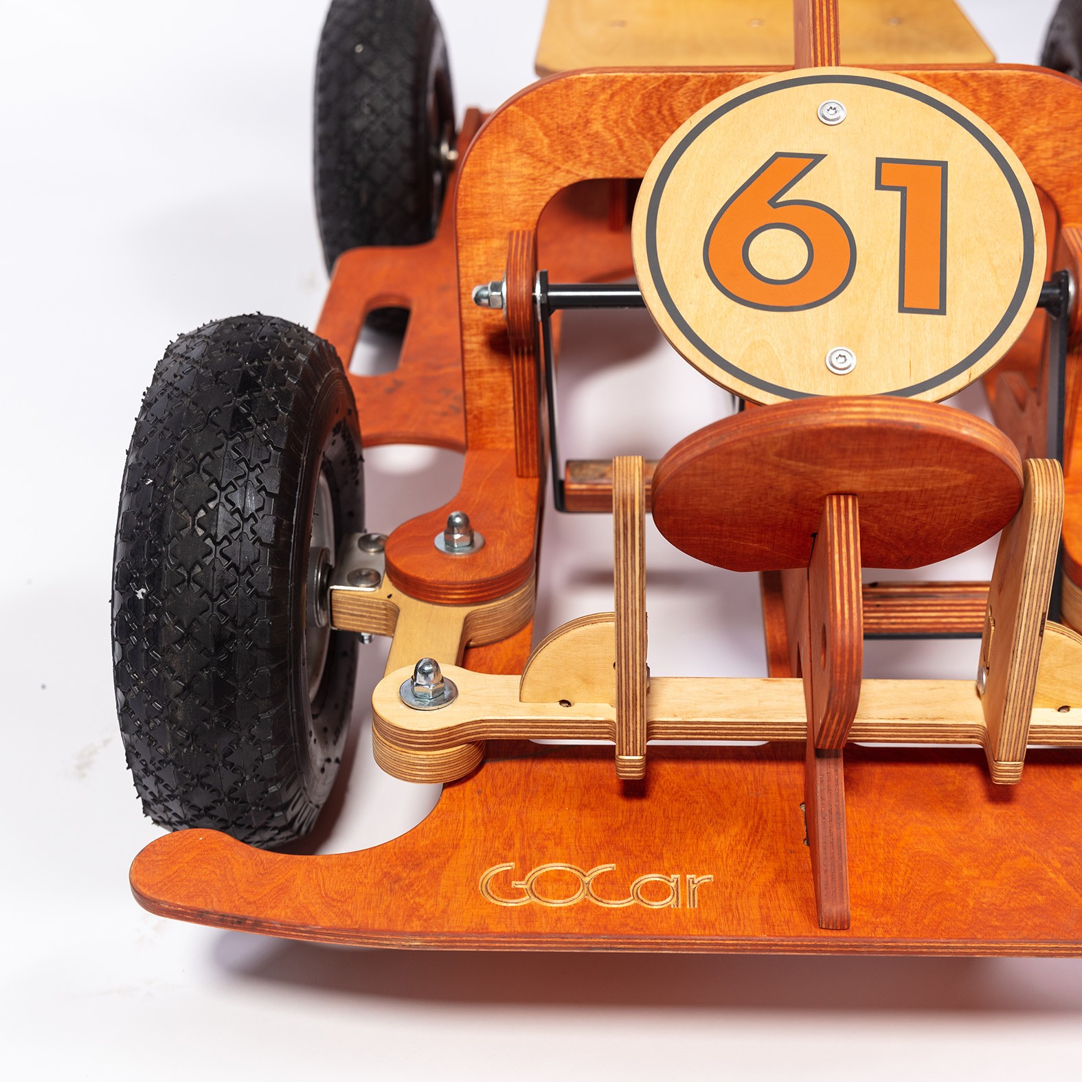 Šlapací autíčko GOCar je zábavnou výzvou jak pro tatínky, kteří si při jeho stavbě umí odpočinout, tak pro ratolesti toužící držet volant, učit se pravidlům provozu i závodění. Základem maximálně ekologické konstrukce vozítka je bezkazová, pevná a odolná březová překližka původem z Lotyšska, která byla důkladně ošetřena voskovým olejem, a odolá tak povětrnostním vlivům. Odolnost vůči nepřízni prostředí také zajišťují díly z nerezové oceli a robustní plastová kluzná ložiska. Šlapací mechanika je přizpůsobena omezenému prostoru a maximální bezpečnosti. Dynamice jízdy prospívají objemná nafukovací pojezdová kola. K zajištění řidičova pohodlí je autíčko vybaveno posuvným opěradlem. Autíčko velikosti M (střední), má nosnost do 50 kg a je určeno pro děti od 6 do 10 let.   Hlavní vlastnosti:pro děti od 6 do 10 let, max. 50 kgodolná konstrukceve formě stavebnice