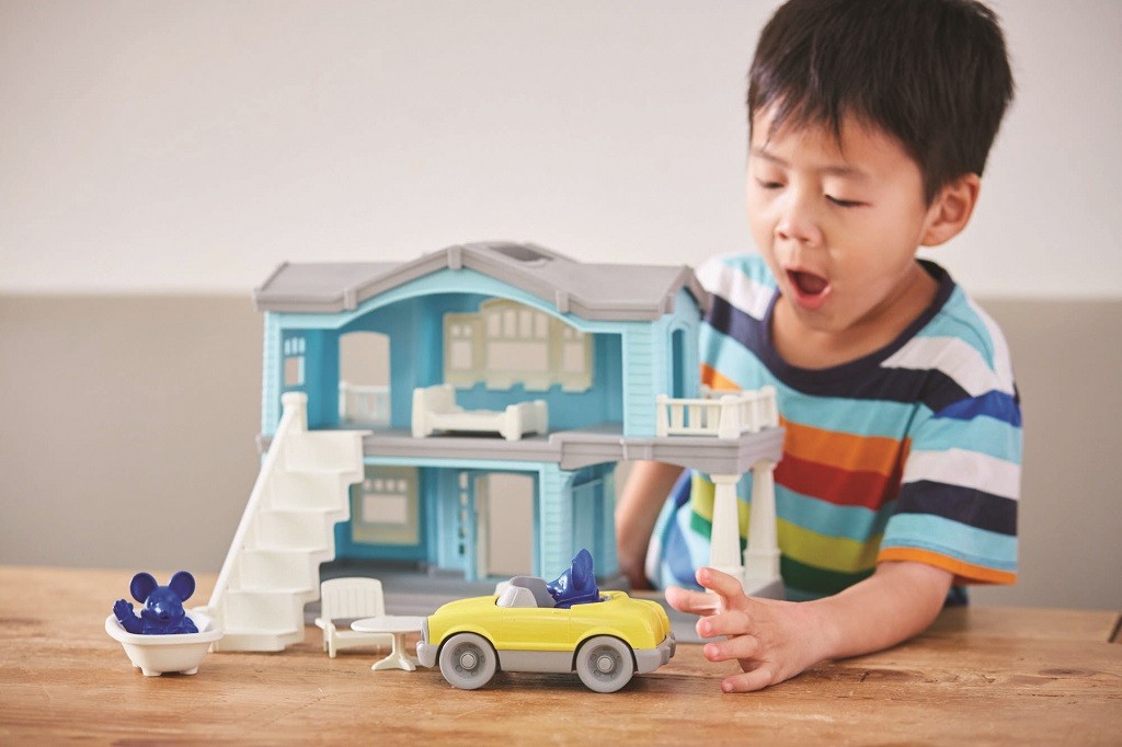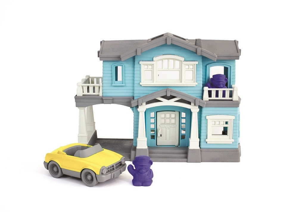 Koukejte, domeček Green Toys pro hru plnou představivosti a kreativity! Má dvě patra, v sadě také žlutý kabriolet, 2 postavičky myšek, schodiště, postel, vana, stůl a 2 židle. Posuvné schodiště můžete v druhém patře umístit kamkoliv, na balkon nebo na zadní stranu domu. Vana, postel, stůl a židle se také vejdou do kteréhokoliv pokoje. Domek má otevřenou zadní stranu a balkony, děti si jej mohou vybavit dle vlastní představy. Podpoří je v kooperativní a interaktivní hře. Dílky se do domu jednoduše vejdou, mohou tam tedy zůstat i mimo hru a ušetří vám tak úložný prostor. Hračka je netoxická, neobsahuje BPA, PVC, ftaláty, ani vnější nátěr. Vyrobeno ze 100% recyklovaného plastu. Pokud hledáte plastové hračky na písek nebo do vody a zároveň Vám velmi záleží na bezpečnosti Vašich dětí, podívejte se na výrobky americké značky Green Toys. Vyrábí ekologické hračky, které jsou populární nejen v USA, firma se svými výrobky sklízí neuvěřitelné úspěchy po celém světě. Green Toys, to je především odpovědná výroba hraček z recyklovaného plastu láhví od mléka. Hlavní vlastnosti: dům, 2 postavičky, kabriolet, schodiště, postel, vana, stůl, 2 židlevšechny dílky se vejdou do domubezpečný materiál bez obsahu BPA, PVC, ftalátůvhodné do myčkyvyrobeno ze 100% recyklovaného plastu v USA