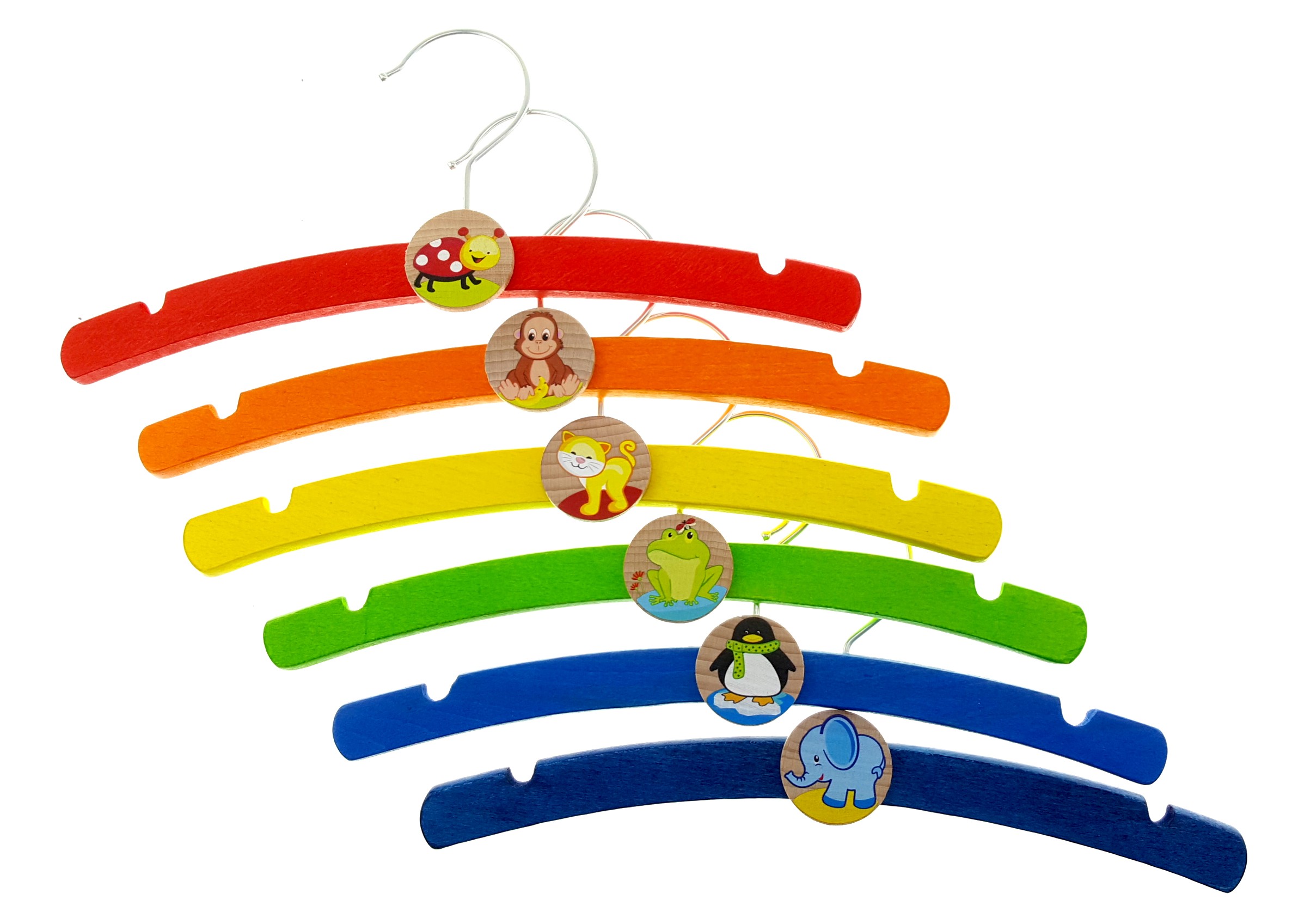 Zavěste oblečení své ratolesti na tato pestrobarevná ramínka. Každé ramínko má své zvířátko, které vašemu dítku zpříjemní oblékání.  Hlavní vlastnosti: 6 ks pestrobarevných ramínek