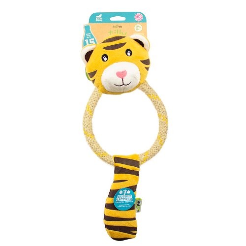 Hračka pro psy z řady Dual material - tygřice Tilly je vyrobena z recyklovaných plastových lahví a má interaktivní, recyklovatelné pískátko. Její tvrdý trup z konopného a bavlněného lana, dvojité prošití a dvouvrstvé provedení dávají tušit, že je 100 % připravena na zápas s Vaším domácím mazlíčkem.