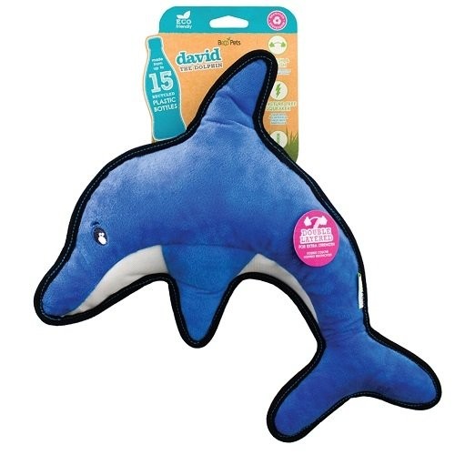 PopisHračka pro psy z řady Rough and Tough - delfín David je vyrobena z recyklovaných plastových lahví a má interaktivní, recyklovatelné pískátko. Hračka je dvouvrstvá a dvojitě prošita, díky čemuž je pevnější a odolnější. Jestli má Váš pes rád zápasení nebo mazlení, tato hračka ho určitě potěší.