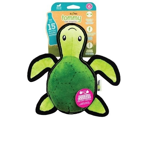 Hračka pro psa Beco Rough and Tough - Želva Tommy je vyrobena z recyklovaných plastových lahví a má interaktivní squeeker - pískátko, které je recyklovatelné. Tommy je dvojitě prošitý a dvouvrstvý, s extra hrubou černou podšívkou, díky čemuž je pevný a odolný.  Jestli má váš pes rád zápasení nebo mazlení, tato hračka ho určitě potěší.