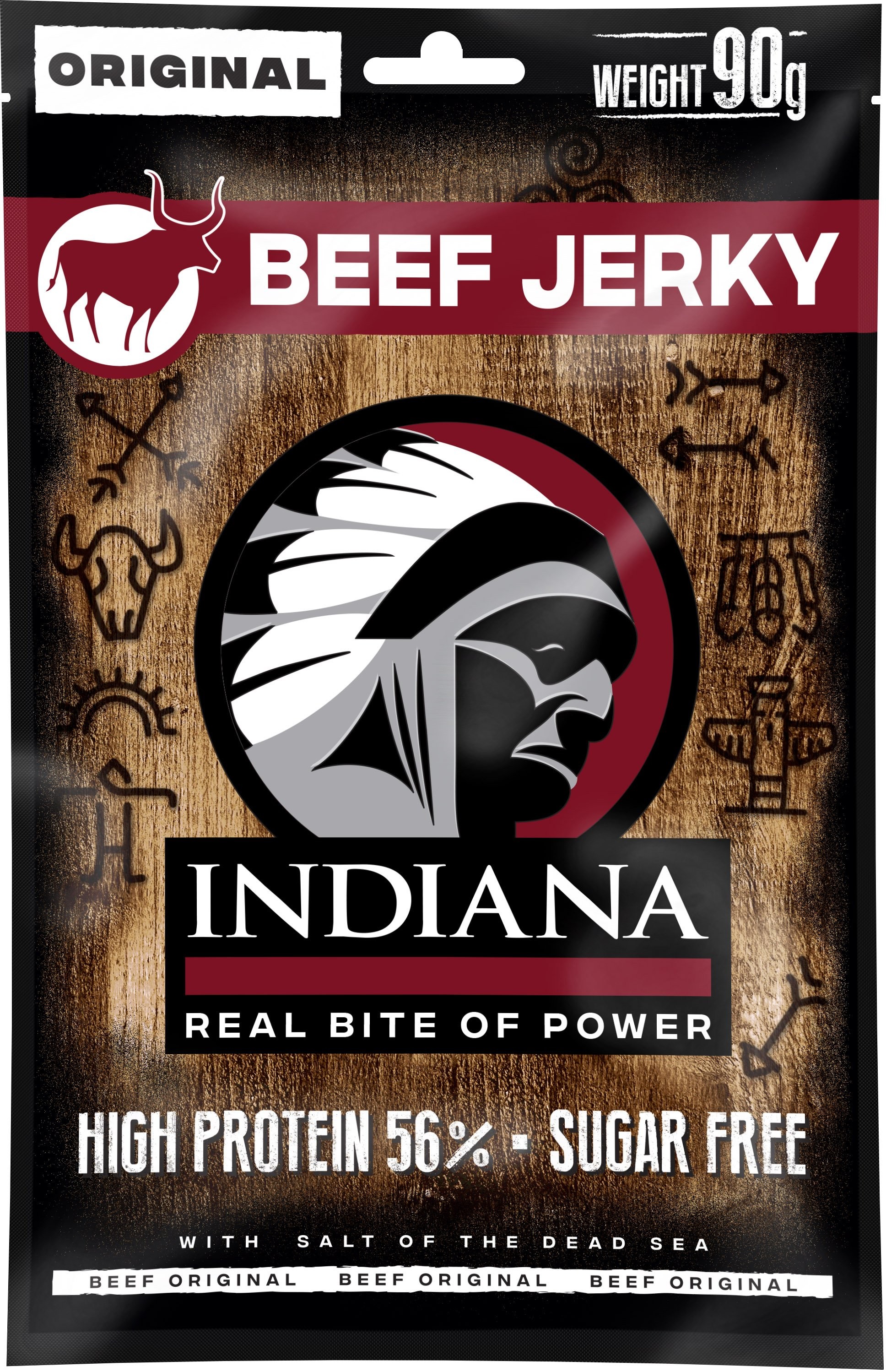 Jste připraveni na šťavnaté hovězí? Tohle je nejoblíbenější jerky bledých tváří – náčelníkova originální receptura s nezaměnitelnou evropskou slanou chutí masa. Stačí otevřít sáček a zakousnout se! Indiana Jerky Vám dodá pořádný kus energie při zachování minimální hmotnosti.