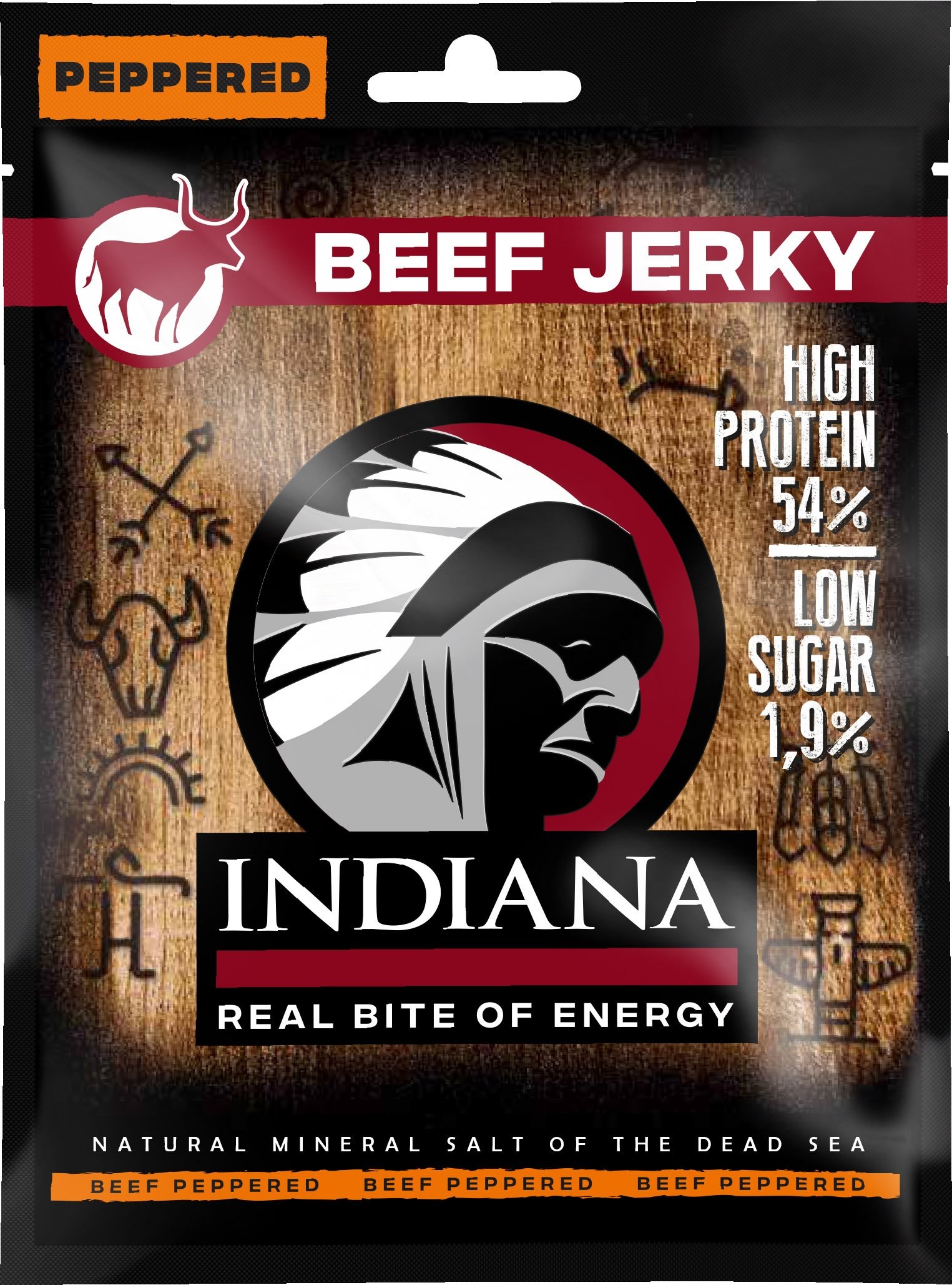 Úvod Jídlo a nápoje Trvanlivé potraviny Sušené maso INDIANA Jerky hovězí Peppered 25g