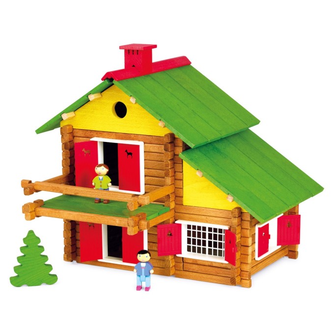 Dřevěná stavebnice inspirována alpskými chaletami potěší každého malého stavitele a stane se ozdobou dětského pokoje. Stavebnice Jeujura Constructions mají dlouhou tradici a patří mezi klasické francouzské hračky. Nabízí série tématicky věnované chaletám, domkům a farmám, ale také divokému západu a středověku. Dají se mezi sebou volně kombinovat a k řadě z nich je také nabízeno příslušenství, figurky a vozidla. Jsou vyráběny ve Francii, z masivního bukového a borovicového dřeva francouzského původu. Dílky stavebnic jsou ošetřeny výhradně za použití barev a laků na bázi vody. Každá sada je balena v praktickém lepenkovém kufříku potištěném rostlinnými inkousty a součástí balení je snadno pochopitelný návod. Hlavní vlastnosti:175 dílků z masivního dřeva a podložkapraktické balenívyrobeno ve Francii