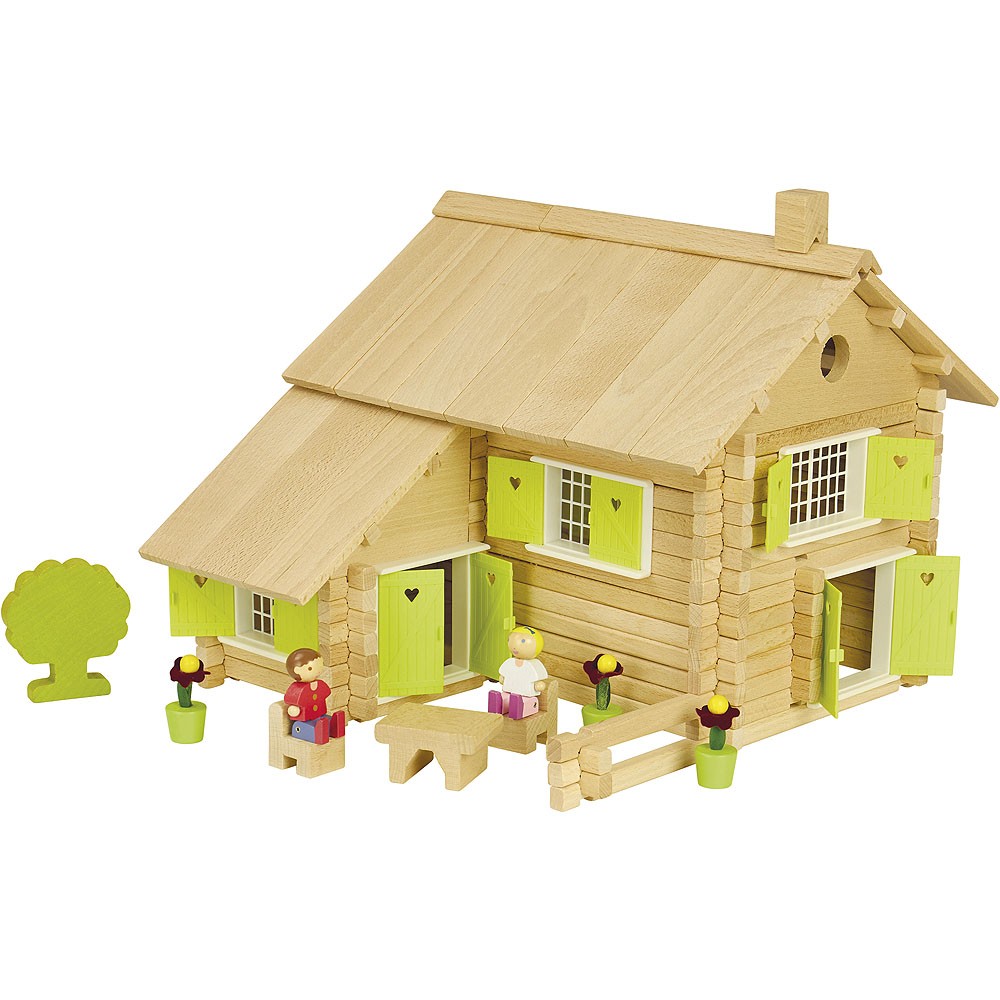 Dřevěná stavebnice domečku ke hrám s figurkami rodin rozvíjí fantazii a stane se ozdobou dětského pokoje. Stavebnice Jeujura Constructions mají dlouhou tradici a patří mezi klasické francouzské hračky. Nabízí série tématicky věnované chaletám, domkům a farmám, ale také divokému západu a středověku. Dají se mezi sebou volně kombinovat a k řadě z nich je také nabízeno příslušenství, figurky a vozidla. Jsou vyráběny ve Francii, z masivního bukového a borovicového dřeva francouzského původu. Dílky jsou ošetřeny výhradně za použití barev a laků na bázi vody. Každá sada je balena v praktickém lepenkovém kufříku potištěném rostlinnými inkousty a součástí balení je snadno pochopitelný návod. Hlavní vlastnosti:240 dílků z masivního dřeva a podložkapraktické balenívyrobeno ve Francii