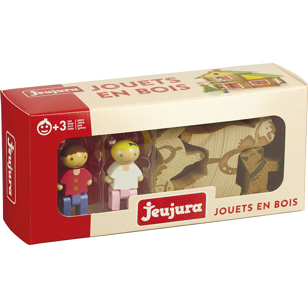 Sada figurek s koňmi skvěle doplní stavebnici jízdárny či stáje, ale i jiné. Doplňky ke stavebnicím Jeujura Constructions mohou sloužit i samostatně. Figurky lidí mají pohyblivé končetiny. Jsou nabízeny v tématicky zaměřených sériích, ale dají se různě kombinovat. Stejně jako stavebnice jsou vyráběny ve Francii, z masivního bukového a borovicového dřeva francouzského původu a jsou ošetřeny výhradně za použití barev a laků na bázi vody.   Hlavní vlastnosti:2 pohyblivé figurky lidí a 3 figurky zvířatvyrobeno ve Francii