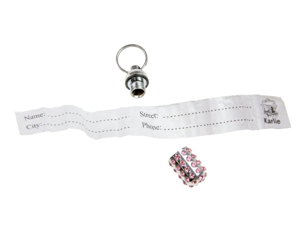 Adresář s kamínky stříbrný, který se připevní k obojku s adresou uvnitř. Velikost 15x8mm.