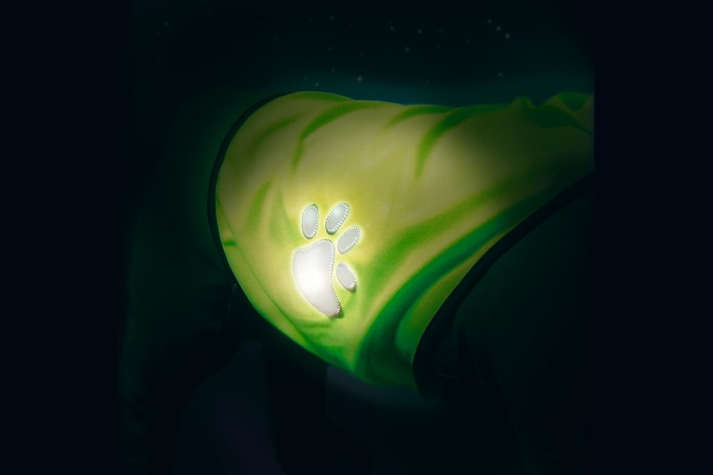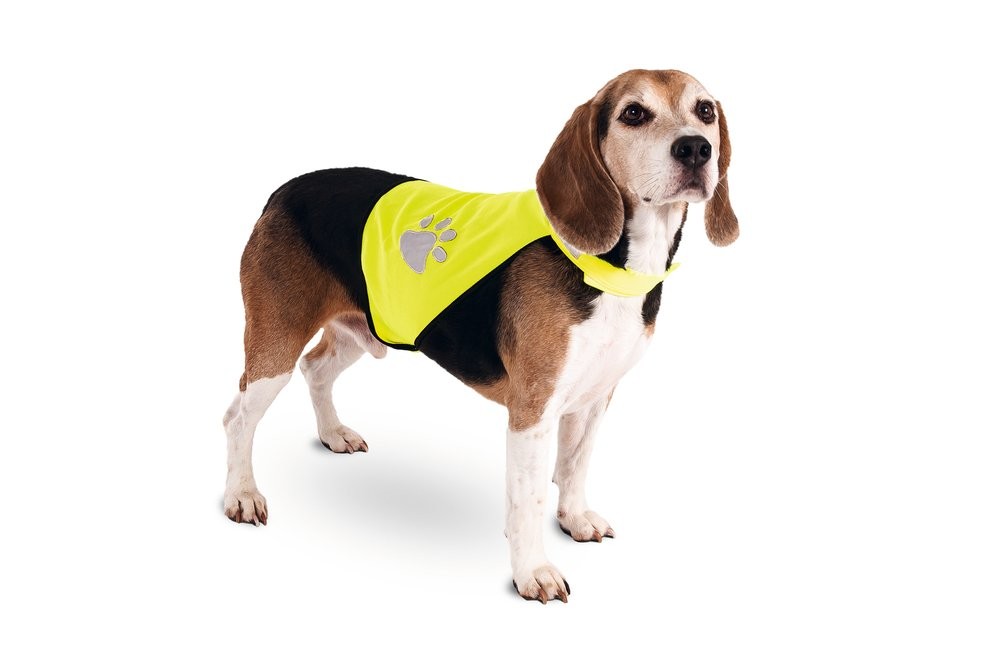 Bezpečnostní vesta s reflexními prvky pro psy s motivem tlapky. Zapínání na suchý zip. Velikost M. Celý popis