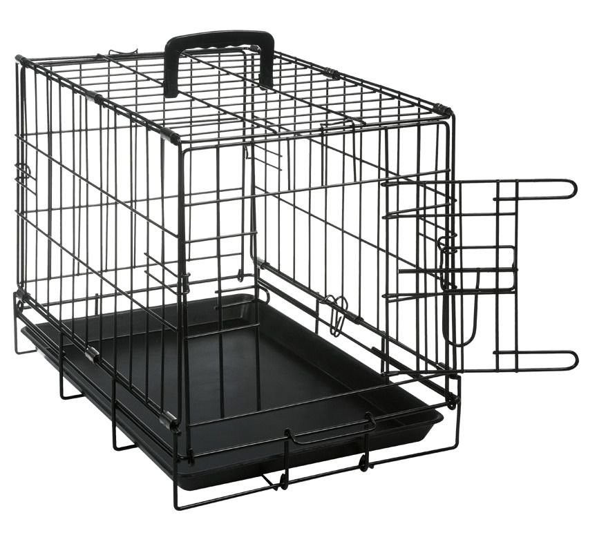 Drátěná klec v černé barvě se dvěma vchody pro malá zvířata s rukojetí. Velikost 93x57x62cm. .