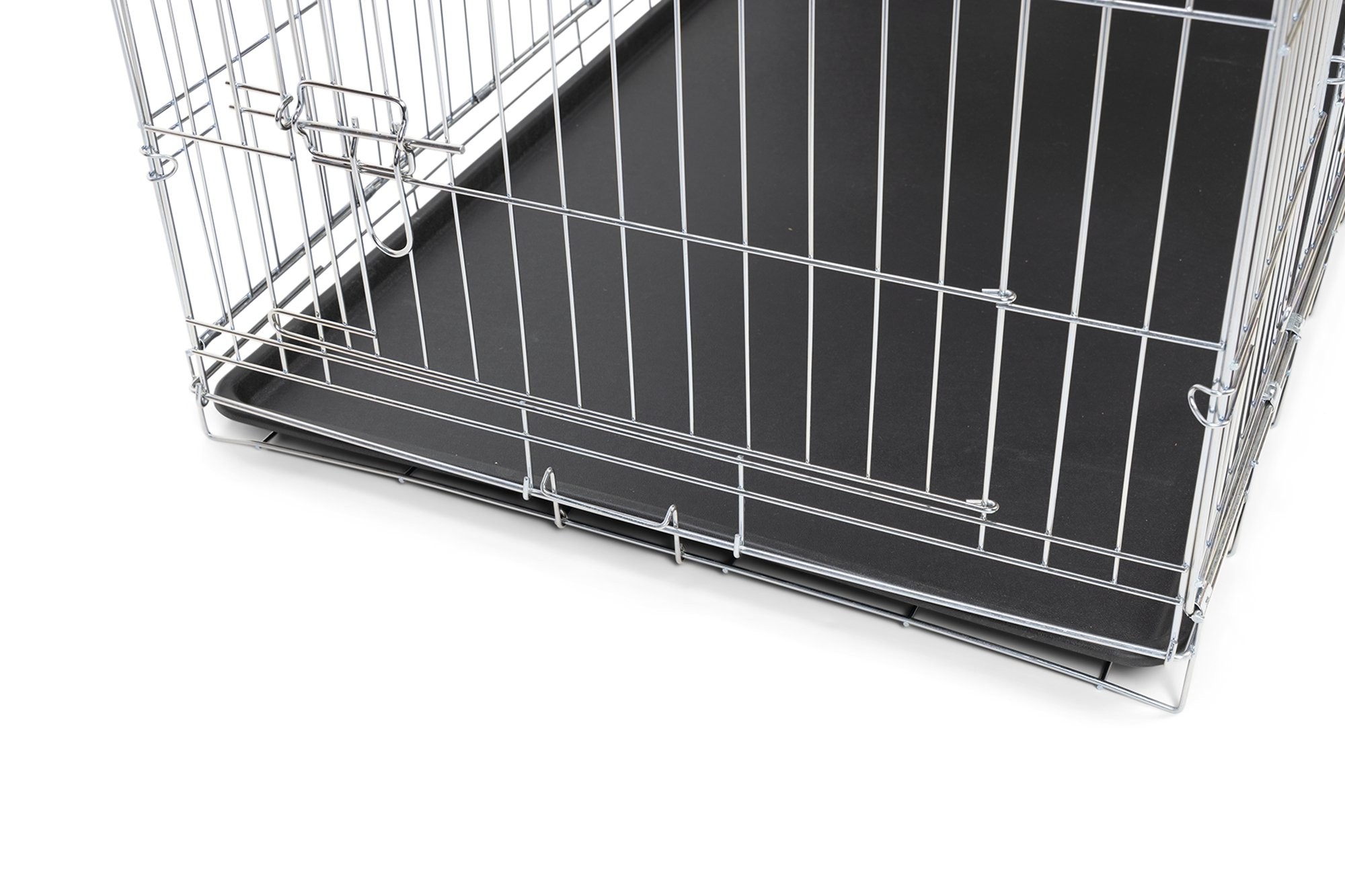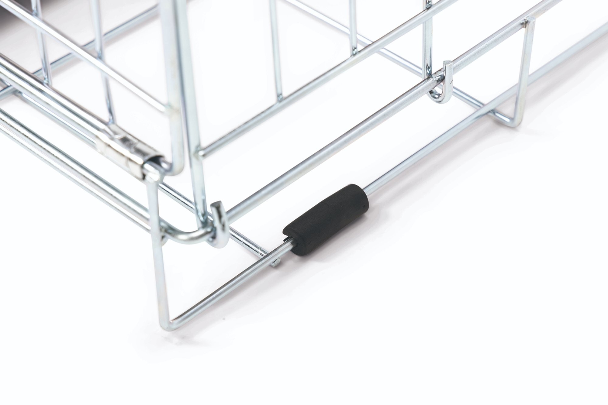 Stříbrná drátěná klec vhodná pro malá zvířata. Nabízí bezpečné útočiště doma i na cestách.