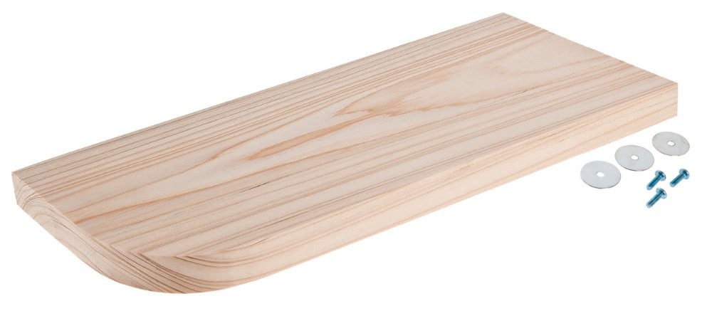 Dřevěné odpočívadlo pro hlodavce. Kovové úchyty (šrouby) k uchycení na mříž jsou součástí odpočívadla.