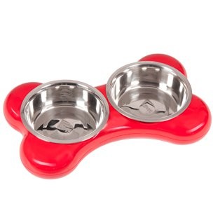 Dvě praktické nerezové misky v červeném plastové stojánku pro větší stabilitu misek. Misky se snadno vyndávají. Velikost misky 2x1500ml/49x30x10cm/