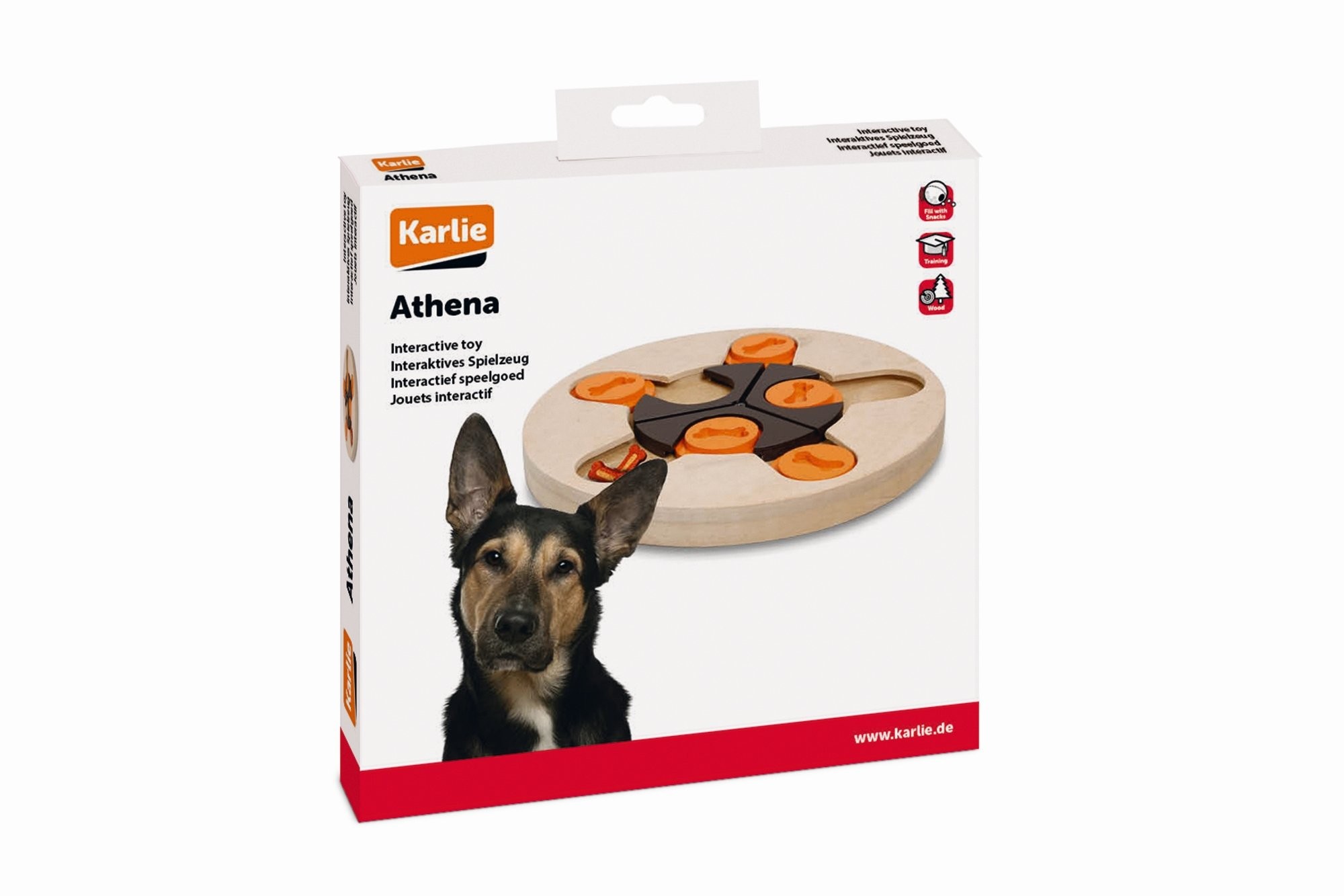 Pro šťastný život psa je kromě fyzické aktivity také důležité pravidelně psa psychicky trénovat. V tomto ohledu poskytují smysluplnou aktivitu hračky pro psy Karlie ze série Doggy Brain Train. Pes hledá svou odměnu otevřením úkrytů posunutím panelů a zvednutím poklopu. Majitelé mohou pomoci a nejdříve psa navést na správnou stopu. Tato intenzivní interakce posiluje pouto mezi lidmi a zvířaty a pomáhá psovi budovat důvěru. Stabilní a kvalitní dřevěná deska je robustní a má průměr 23 cm.