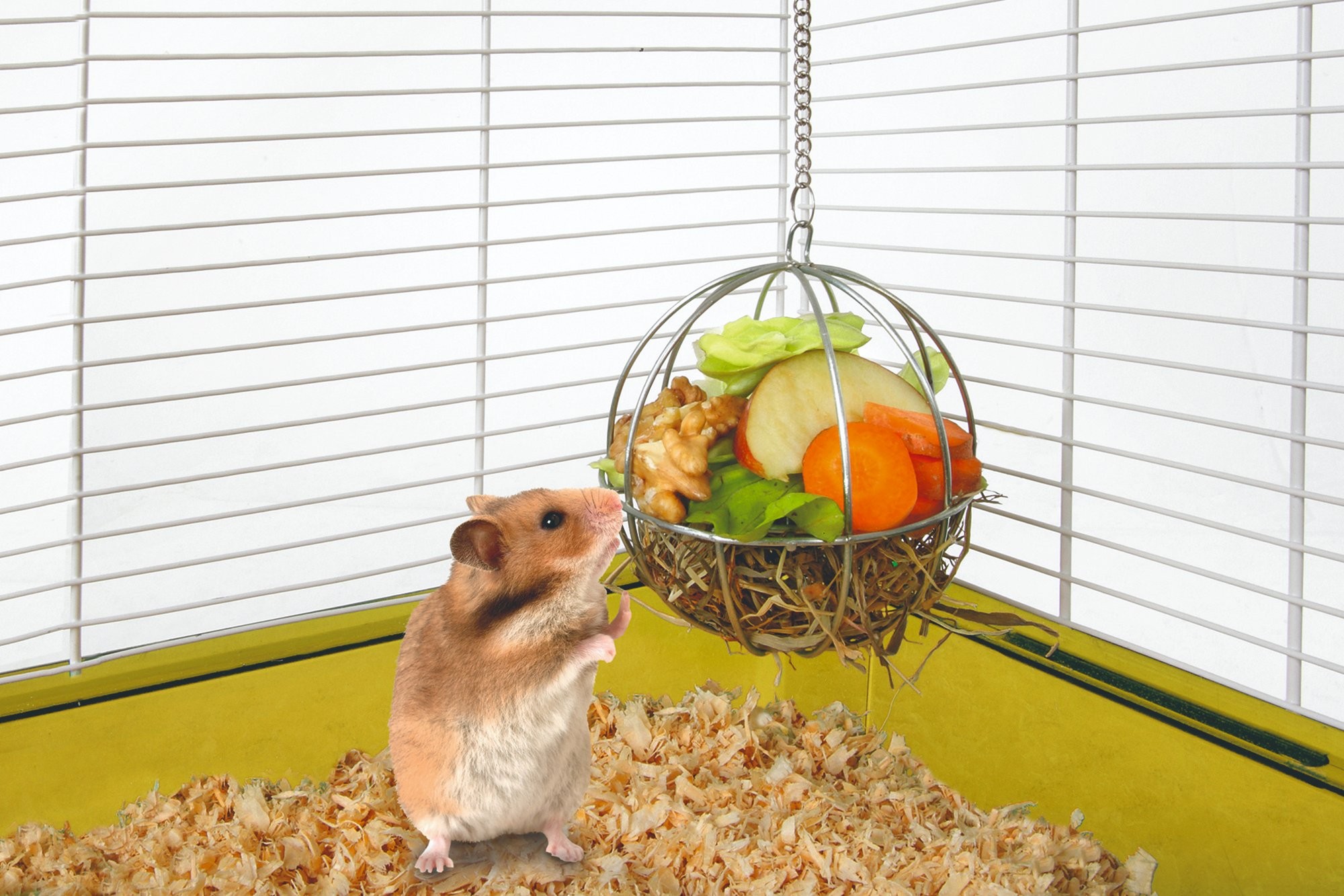 Praktické kovové krmítko pro hlodavce na zeleninu.