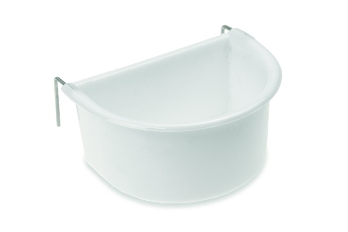 Miska na krmení s kovovými háčky k zavěšení do ptačí klece.