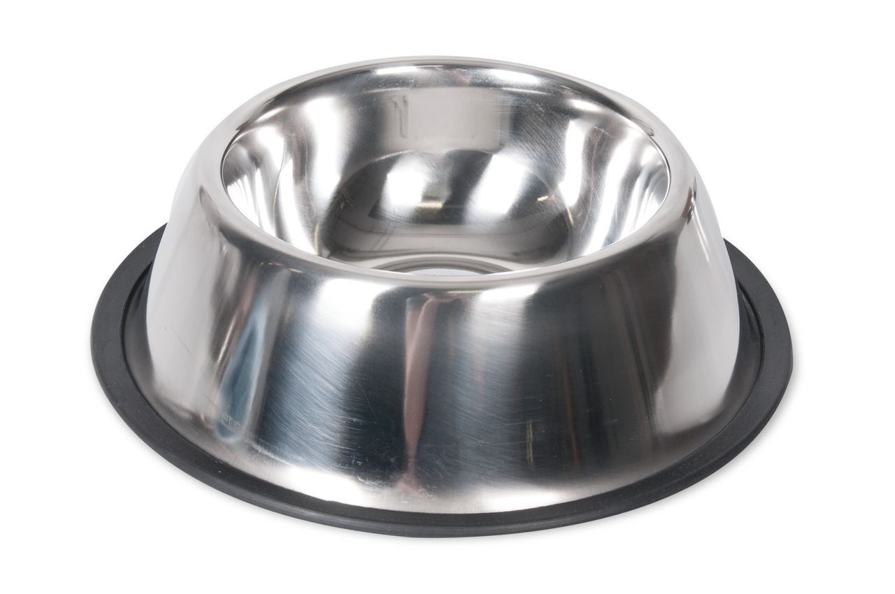 Praktická nerezová miska s gumovým okrajem, která zabrání skluzu po podlaze. Celý popis