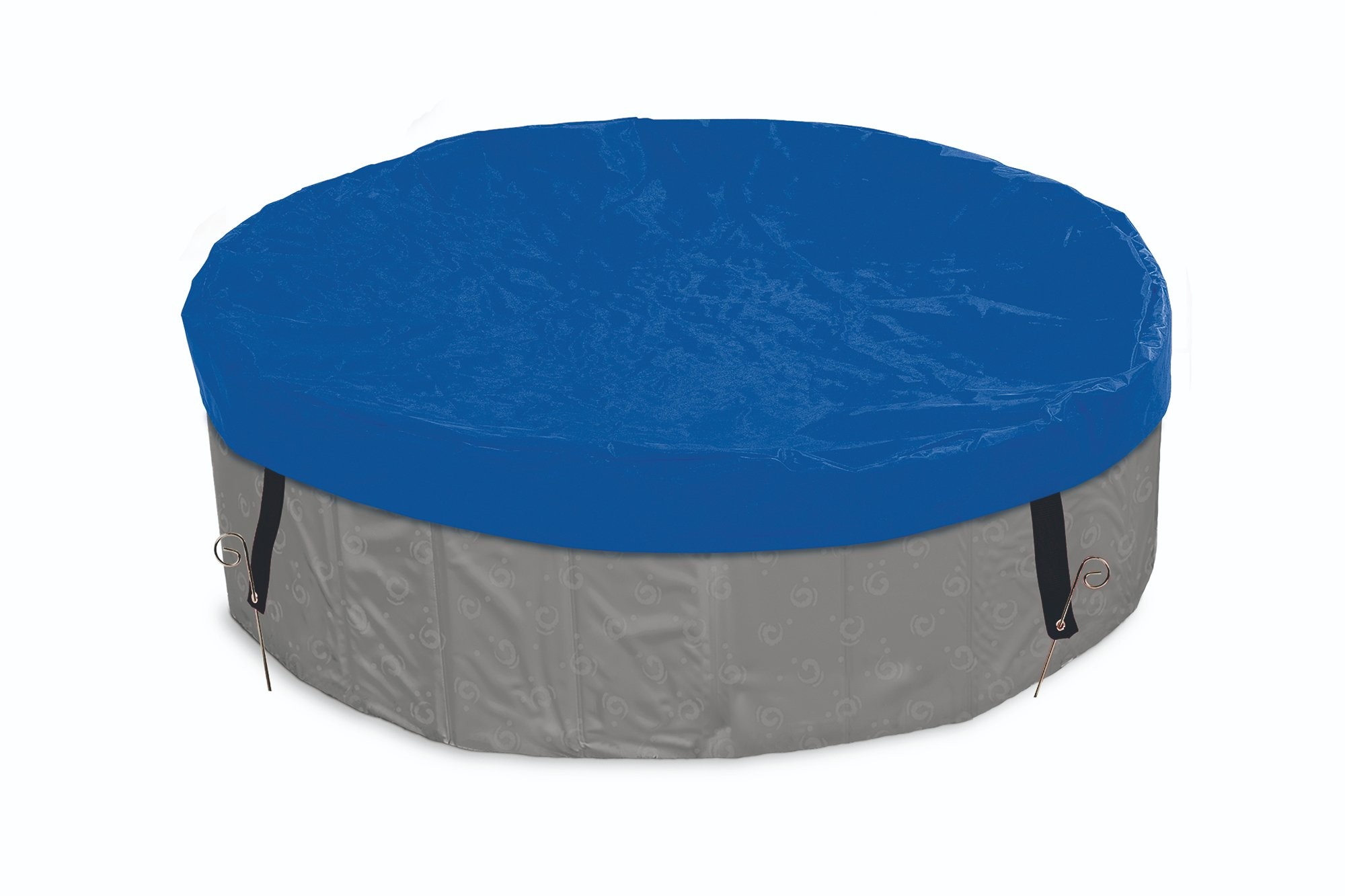 Ochranný kryt na bazén pro psy v modré barvě. Vhodný na bazény o průměru 80 cm. Lze snadno upevnit pomocí přiložených kolíků.