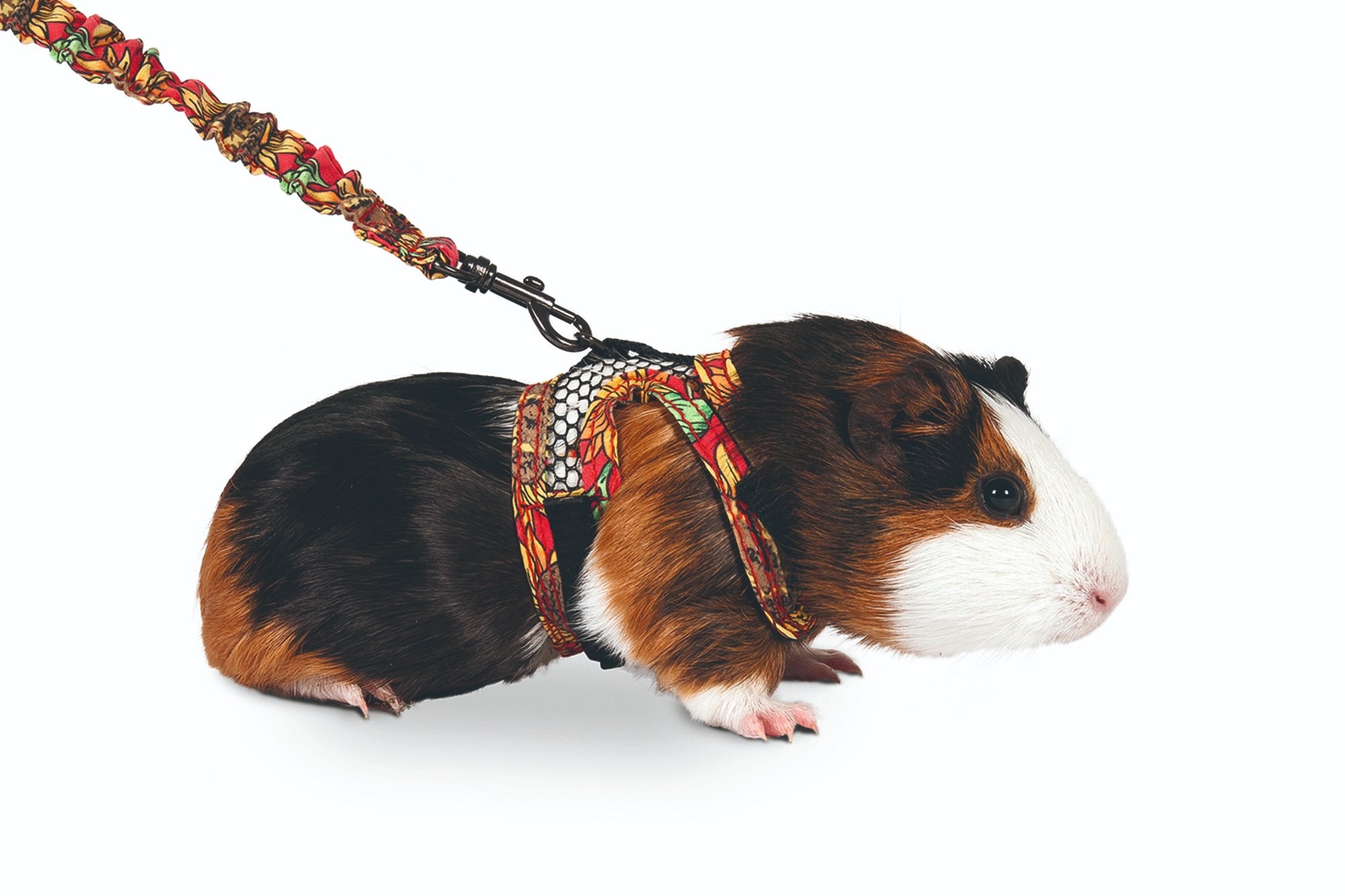 Prodyšný postroj s flexibilním vodítkem vhodný pro morčata a fretky.
