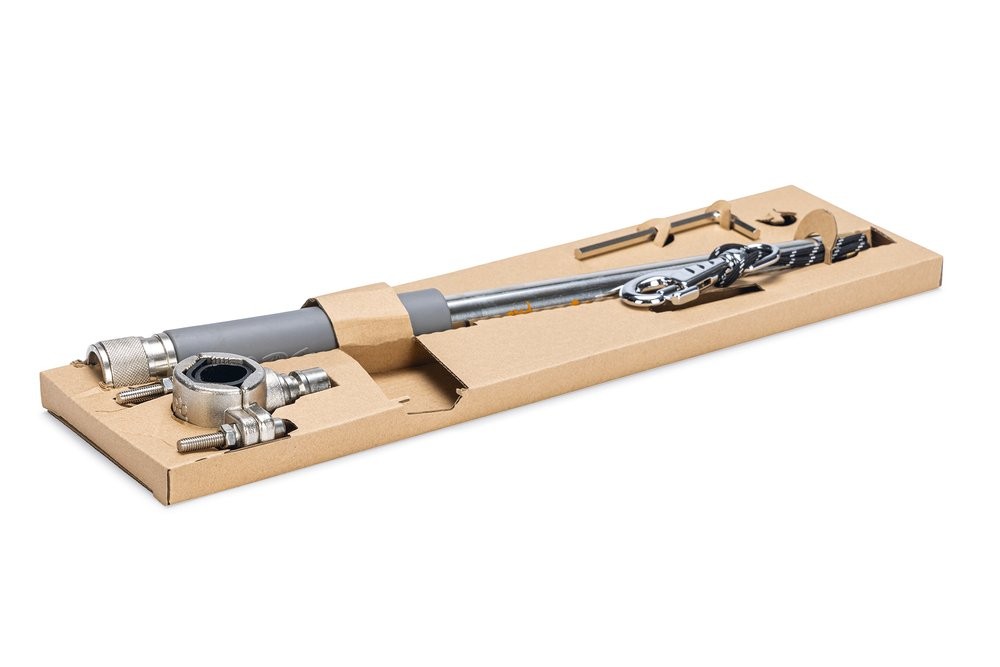 Upozornění: Vodítko slouží jako pomůcka na trénování psů. Nepoužívejte vodítko, pokud vezete na kole děti. Neměly by používat děti mladší 18 let anebo osoby vážící méně než 35 kg. Není doporučeno používat vodítko pro psy mladší 12 měsíců nebo váhy menší než 15 kg. Pro instalaci použijte návod k použití uvnitř balení.