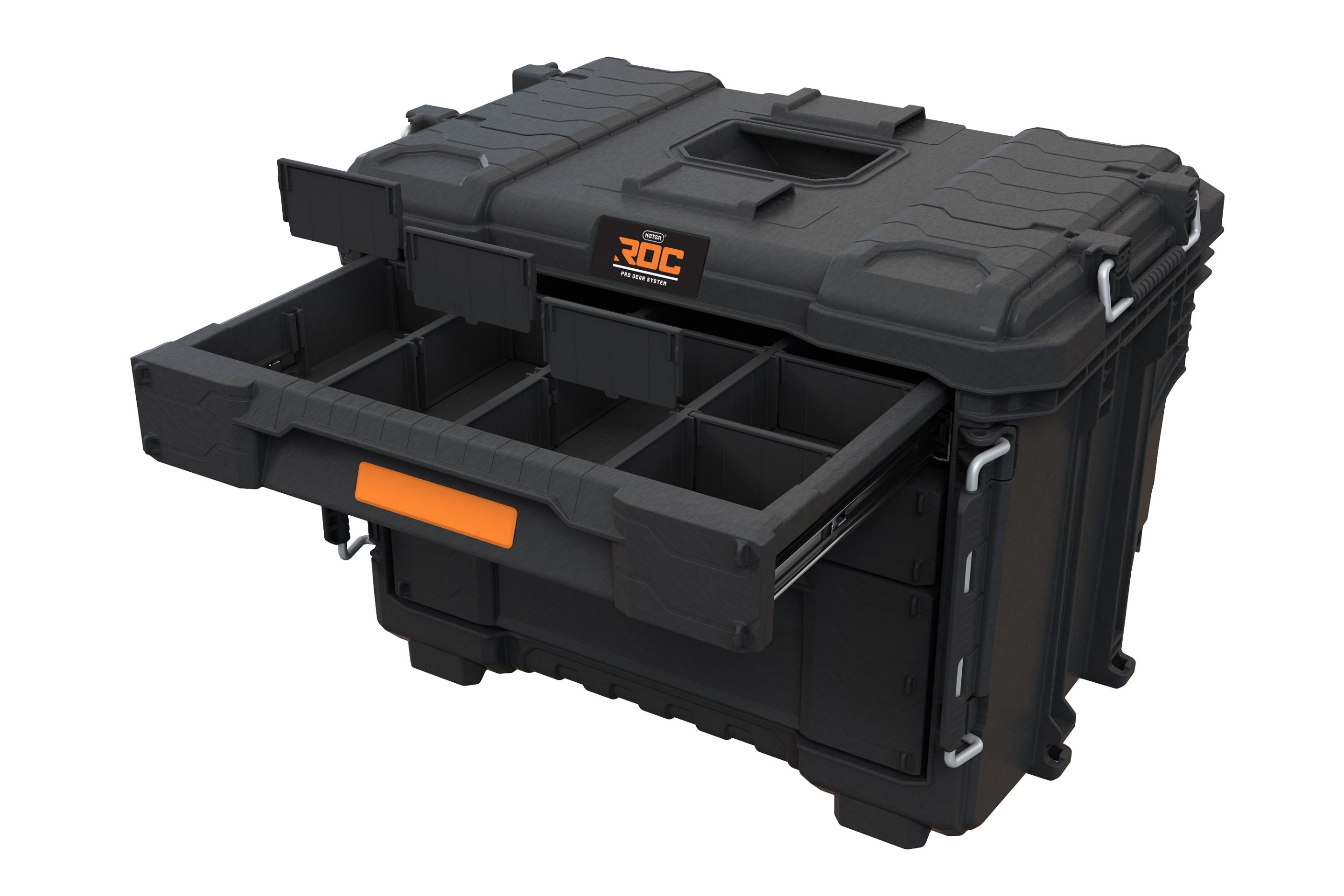 Šuplíky Pro Gear XL jsou inovativní, s prémiovými funkcemi a nejdostupnější, všestranné a mobilní modulární řešení. Zásuvky jsou uzamykatelné zepředu díky robustním předním zámkům, které umožňují bezpečnou přepravu zásuvkové jednotky XL. Zahrnuté přepážky umožňují vnitřní organizaci a ukládání malých dílů a přehledné rozdělení v hluboké zásuvce pro rychlé vyhledávání a různorodý obsah nářadí, díky čemuž bude vaše vybavení uspořádané. Zásuvky XL 3 mají dvě velikosti: 2 mělké zásuvky a 1 hluboká zásuvka pro uložení velkého a malého nářadí s maximální lehkostí a pohodlím.
