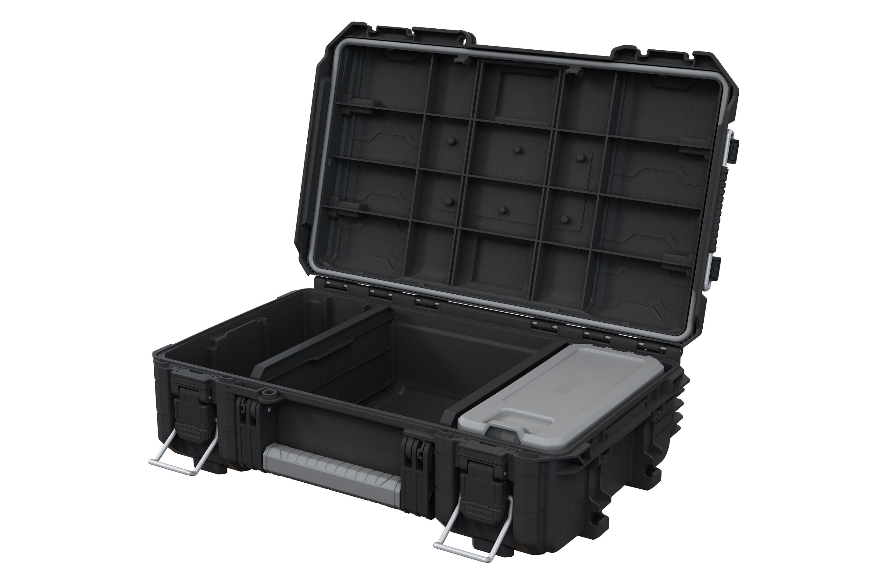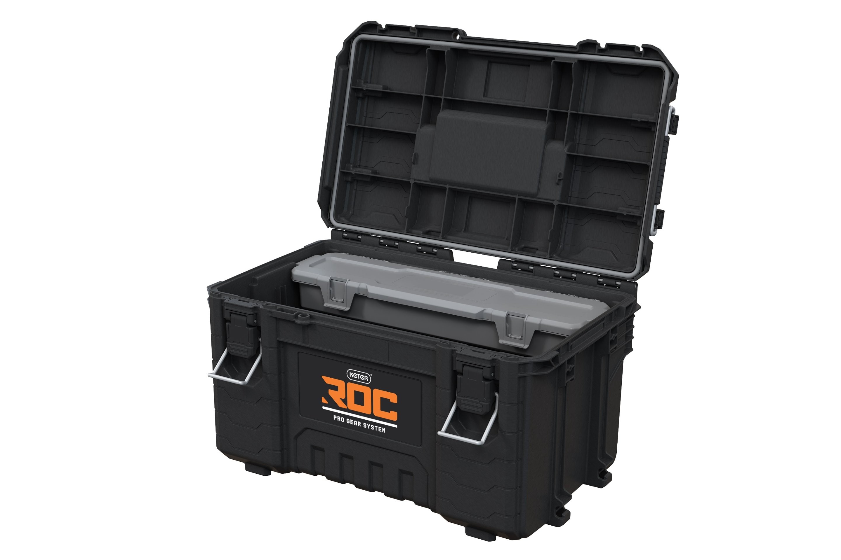Vnitřní organizéry umožňují mít ve výbavě pořádek. Systém má krytí IP65. ROC Pro Gear je osvědčená inovace postavená na zpětné vazbě od skutečných profesionálů, jako jste vy. Nyní je snazší než kdy jindy naložit svou bednu s nářadím do korby nákladního auta. S novým vozíkem Pro Gear, který má plně odnímatelný rozvor a teleskopickou rukojeť, můžete svůj XL box na náředí zcela oddělit od teleskopické rukojeti s kolečky pro snadnější přepravu. Základní jednotku můžete také během několika sekund vyměnit. Tento vozík, vždy připravený k použití, obsahuje 9" kola a kompatibilitu připojování a odpojování mezi sadami nářadí KETER ROC Pro Gear 2.0 XL.