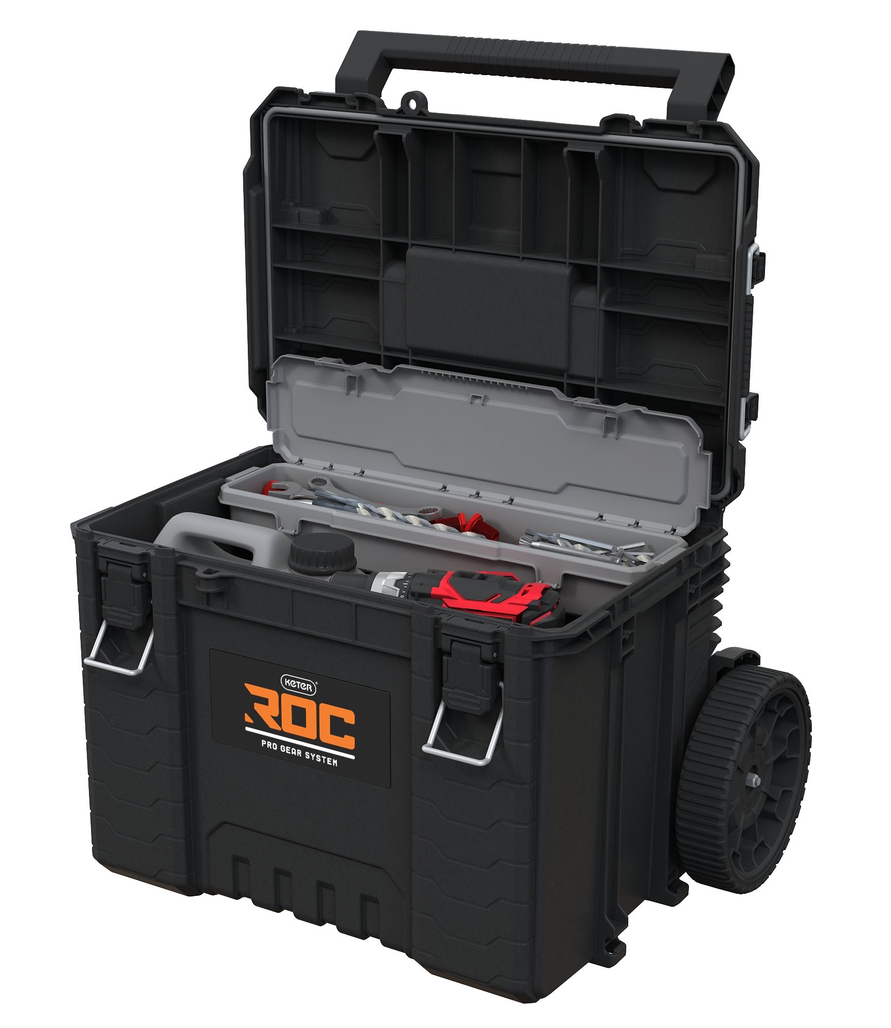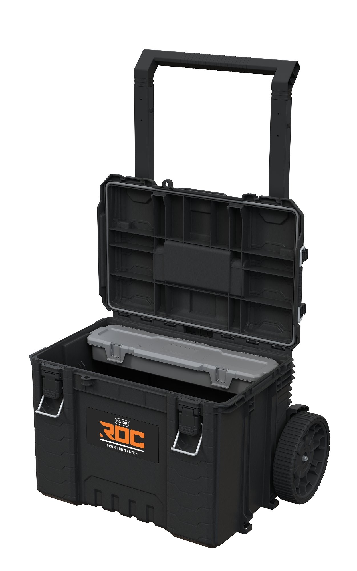 Vyřizování Vašich požadavků na pracovišti začíná vozíkem ROC Pro Gear 2.0. Tento vozík je vždy připravený k použití. Obsahuje odolná 9" kola pro velké zatížení a nabízí kompatibilitu připojování a odpojování (funkce Attach-and-Detach) mezi ROC Pro Gear XL a zásuvkami XL. Díky této funkci je nyní nakládání vozíku Pro Gear do korby nákladního auta snazší než kdy dříve. S plně odnímatelným rozvorem a teleskopickou rukojetí můžete své jednotky XL zcela oddělit od vozíku pro snazší přepravu. Základní jednotku můžete také vyměnit během několika sekund.