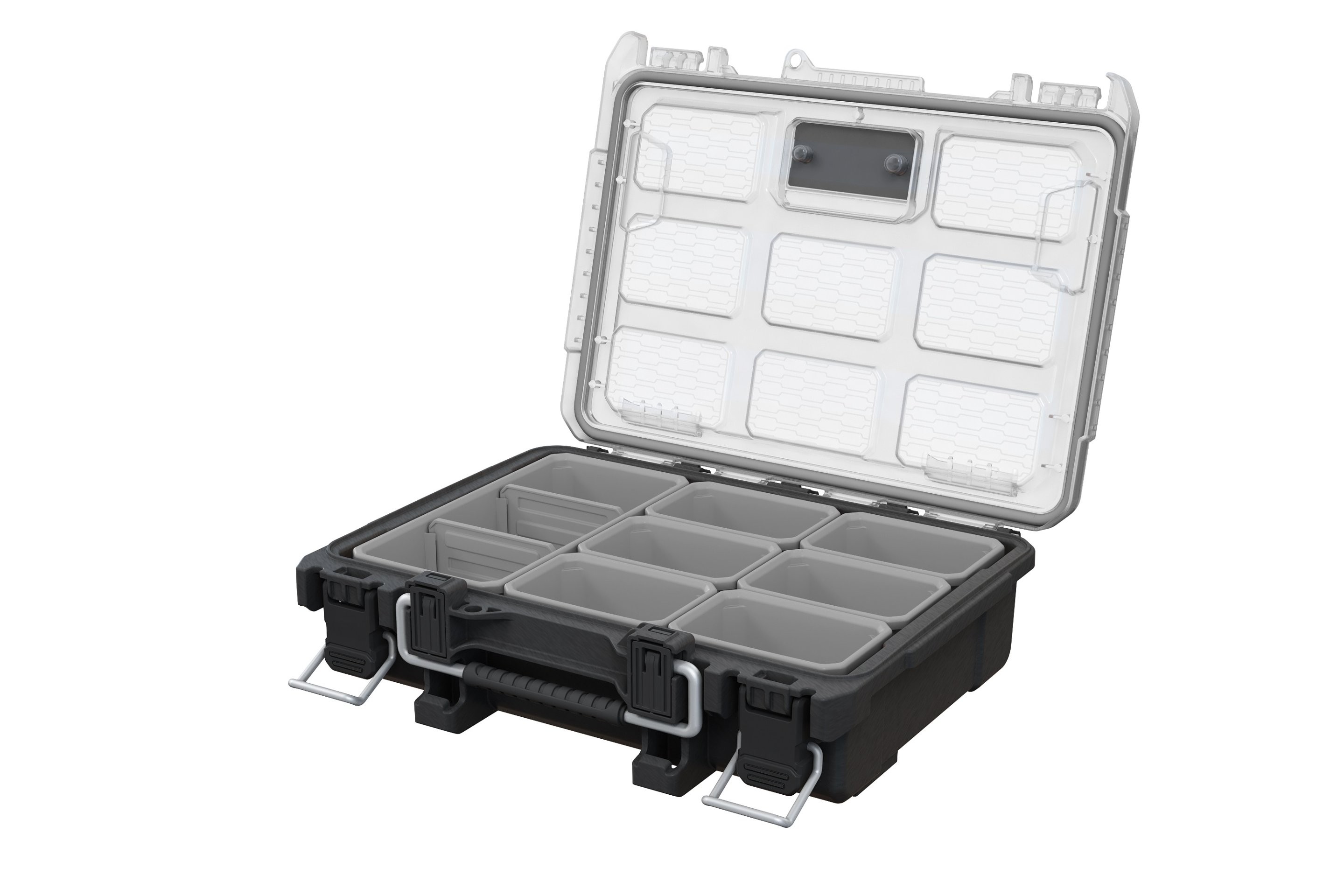 Kompaktní organizér ROC Pro Gear 2.0 je odolné řešení pro profesionální uživatele do dílny i na staveniště. Konektivita s poloviční stopou Vám umožňuje rozšířit možnosti úložiště zejména na cestách. Držák Pro Mount nabízí pohodlnou funkci "Hang-and-Work" pro Vaši dílnu nebo pracoviště. Tento kompaktní organizér obsahuje 6 hlubokých úložných přihrádek a 1 trojitý zásobník se 2 přepážkami. Organizér je odolný vůči prachu a vodě díky těsnění IP65. Zabezpečte obsah organizéru pomocí očka na visací zámek (zámek není součástí dodávky), efektivně rozdělte potřebný obsah a noste sebou vše, co potřebujete k dokončení Vašeho projektu. Kompaktní organizér ROC Pro Gear 2.0 je plně kompatibilní s ROC Pro Gear 2.0 a 28" vozíkem.