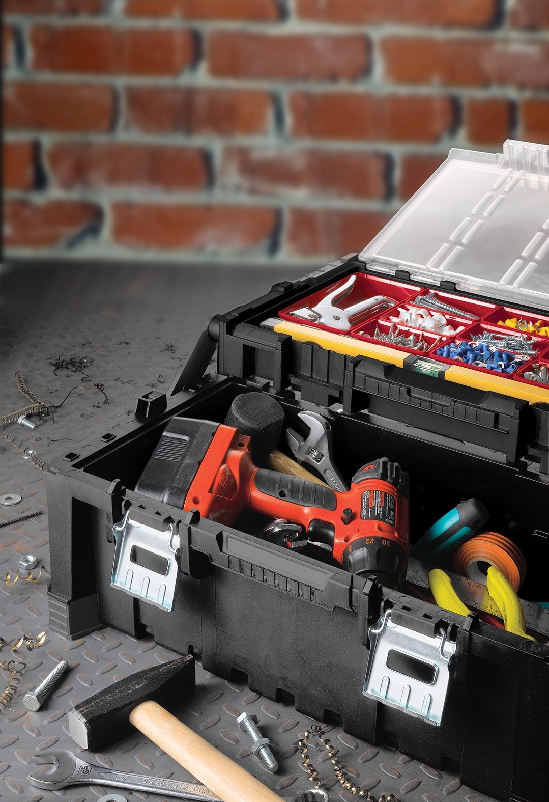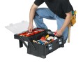Praktická skříňka s velkým objemem. Speciálně navržený vnitřek a dlouhá komora jsou určeny k uskladnění většího nářadí, usnadňují práci a umožňují rozdělení nářadí v závislosti na velikosti. Díky pohodlné a odolné kovové rukojeti lze skříňku bezpečně přenášet. Vysoká kvalita provedení výrobku zaručuje stálost a odolnost, dokonce i v těžkých pracovních podmínkách.