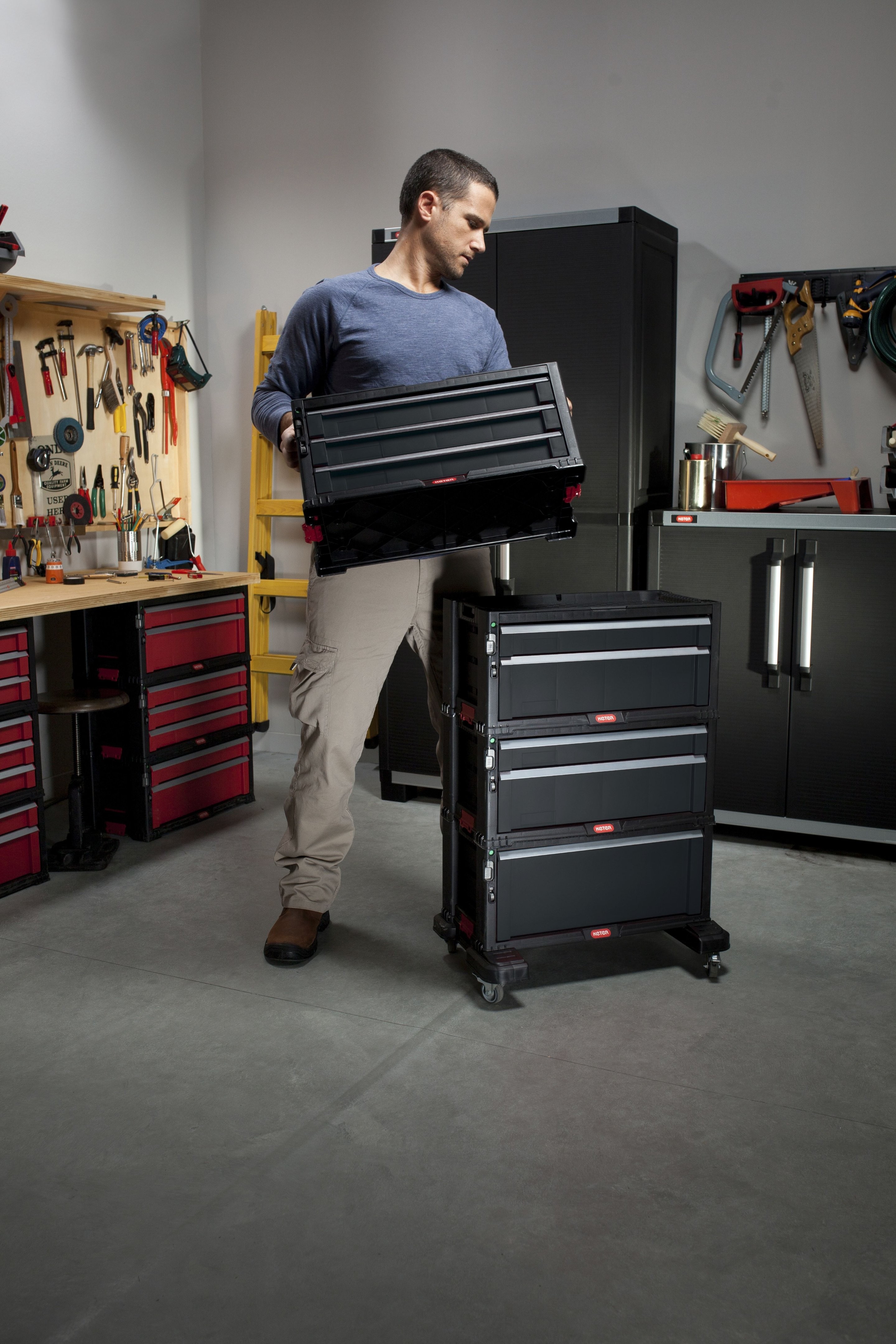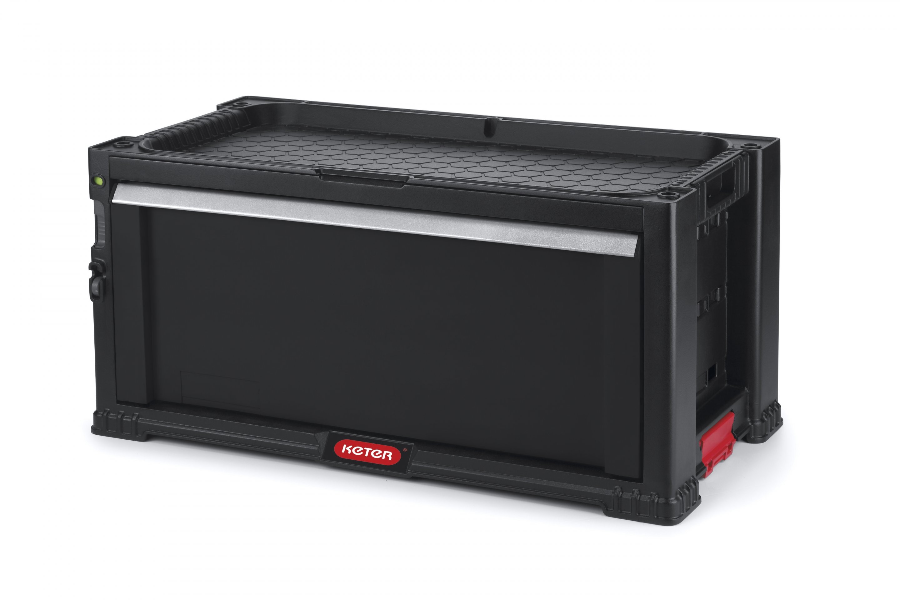 Udělejte si pořádek ve svém úložném prostoru s touto zásuvkovou truhlou na nářadí. Kompaktní design Vám pomůže ušetřit místo, ať už jste profesionál nebo víkendový kutil. Hluboká zásuvka s odnímatelnou přepážkou se dokonale hodí pro velké nástroje. Tato všestranná zásuvková komoda je vyrobena s modulárním designem a lze ji stohovat s dalšími jednotkami díky západkovému a zámkovému mechanismu.