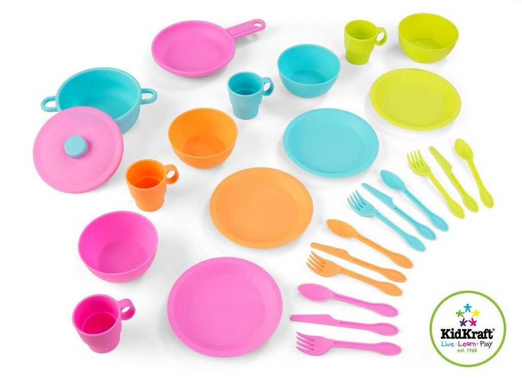 Kvalitní dětský plastový set kuchyňského nádobí BRIGHT od firmy KidKraft. Tato dětská 27 dílná sada se skvěle hodí k jakékoliv kuchyňce z naší nabídky dětských kuchyňek. Sada je určená všem malým hospodyňkám a jejich kamarádkám. Sada obsahuje: 4 nože4 lžíce4 vidličky4 talíře4 hrnky4 misky1 hrnec1 pánev1 poklička Hlavní vlastnosti: vyrobeno z kvalitního plastumateriál z kterého je sada vyrobena se snadno udržujeluxusní provedení, použity jen zdravotně nezávadné materiálybezpečnost hraček pro děti EN71 Standardsplňuje veškeré směrnice EU