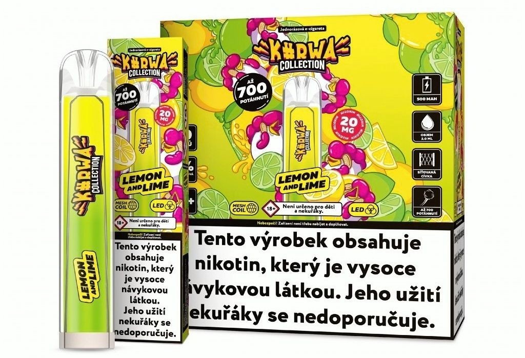 Příjemně kyselá chuť limetky a citrónu. Další série oblíbených jednorázových elektronických cigaret, nesoucí název Kurwa Collection. Tato jednorázová e-cigareta disponuje dostatečně silnou baterií o kapacitě 500mAh, se kterou dosáhnete až 700 potažení. Objem náplně 2ml, obsah nikotinu 20mg/ml, LED podsvícení, Výrobce Kurwa.