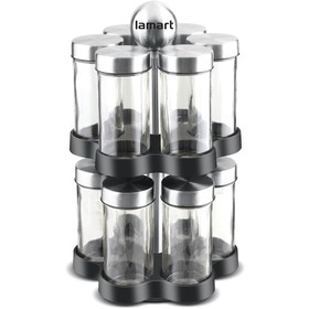 Sada kořenek na otočném stojanu v moderním designuKořenky vyrobeny z odolného skla vhodné i do myčky na nádobí bez víčkaMateriál: nerez, plast, skloBarva: Nerez, černáObjem: 85 mlRozměr: kořenka: Ø 4cm; výška 9,3cm; stojánek: výška 25 cm