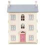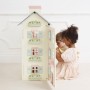 Vítejte doma! Tento velký dřevěný čtyřpatrový domeček pro panenky se bude vyjímat ve sbírce hraček vašich dětí. Čeká je zábava při hře na role, tento nádherný domek je dost velký pro každého malého lorda nebo lady. Grandiózní dům je plný malovaných detailů v jemné pastelové růžové a modré, najdete zde také motivy květin. Krásná klasická i oblouková okna a růžové dveře jen čekají na otevření. Okenice jsou pohyblivé, děti je mohou na noc zavřít, ráno zase dovnitř pustit světlo. Po otevření přední strany se děti mohou ponořit do světa představivosti. Stěny pokojů jsou dekorovány individuálně, najdete zde dřevěné schodiště s okrasným zábradlím. Šedá tašková střecha s 2 komíny je oddělitelná, odhalí půdu, namísto schodiště na ni vede žebřík. Vysněný dům pro panenky bude speciálním dárkem pro mnoho dětí, můžete si jej také předávat z generace na generaci. Vybavení domečku a panenky můžete zakoupit zvlášť – podpořte dětskou představivost doplňky od Le Toy Van, které pasují do všech domečků z kolekce Daisylane. Hračky s účelem Všechny hračky firmy Le Toy Van jsou vyrobeny s cílem – aby dlouho vydržely. Designovány s láskou zkušenými řemeslníky za použití etických praktik a udržitelných materiálů, které jsou laskavější k naší planetě. Hlavní vlastnosti: pro panenky do 15 cmudržitelné FSC dřevovyrobeno eticky s láskoutestováno dle nejpřísnějších standardůmalováno netoxickými barvami na bázi vodyinspiruje k představivé hřepomáhá s rozvojem kreativity, řeči a koordinace Ocenění hračky:Made For Mums Gold Award 2018Good Toy Guide Approved Daisylane kolekce: Prestižní kolekce domečků pro panenky a doplňků firmy Le Toy Van. Před více než 25 lety zakladatel Georges navrhl svůj úplně první domeček pro panenky, stavební kámen této firmy. Vyrobeno eticky z udržitelných materiálů, dřevěné domečky pro panenky Daisylane jsou jedinečné a nebudou dětskou představivost držet zpátky. Rodinné dědictví, opravdová investice do hraní. Značka a certifikát FSC® (Forest Stewardship Council) zaručuje, že dřevo, ze kterého byl produkt vyroben, nebylo vytěženo nelegálně a pochází z lesů obhospodařovaných šetrným či přírodě blízkým způsobem, ve kterém jsou dodržovány přísné environmentální a sociální požadavky. Značka FSC® na výrobku znamená, že svým nákupem pomáháte chránit lesy a podporujete šetrné, odpovědné či přírodě blízké hospodaření, díky kterému jsou naše lesy stabilnější, zdravější, mají přirozenou druhovou skladbu a lépe odolávají negativním následkům klimatických změn.
